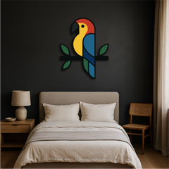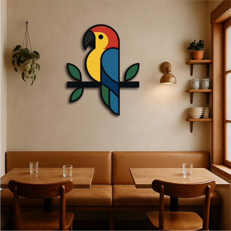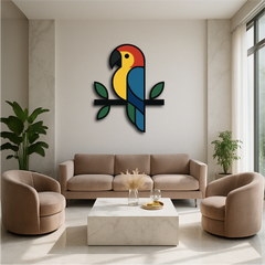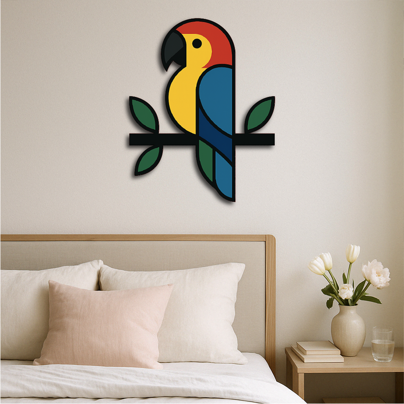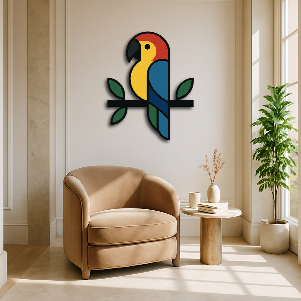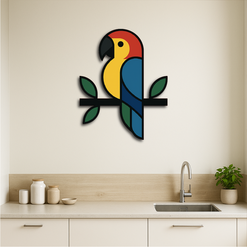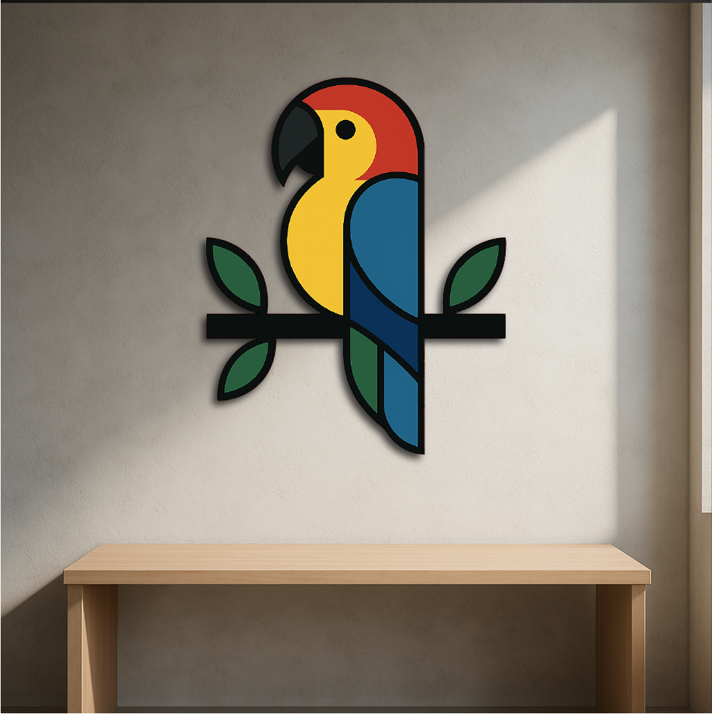 Add a splash of tropical color and modern symmetry to your space with this stunning Geometric Parrot Multicolor Metal Wall Art. Featuring a stylized parrot perched on a branch with bold primary colors and clean lines, this design is the perfect fusion of nature and modern minimalism.