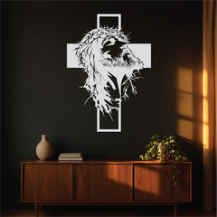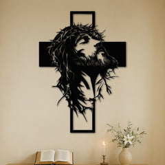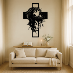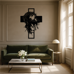 Bring sacred beauty and powerful symbolism into your space with this striking Jesus on the Cross Metal Wall Art. Crafted from solid steel and powder-coated in matte black, this design features the face of Christ wearing the Crown of Thorns, set within and across a layered cross silhouette — evoking reverence, sacrifice, and grace.