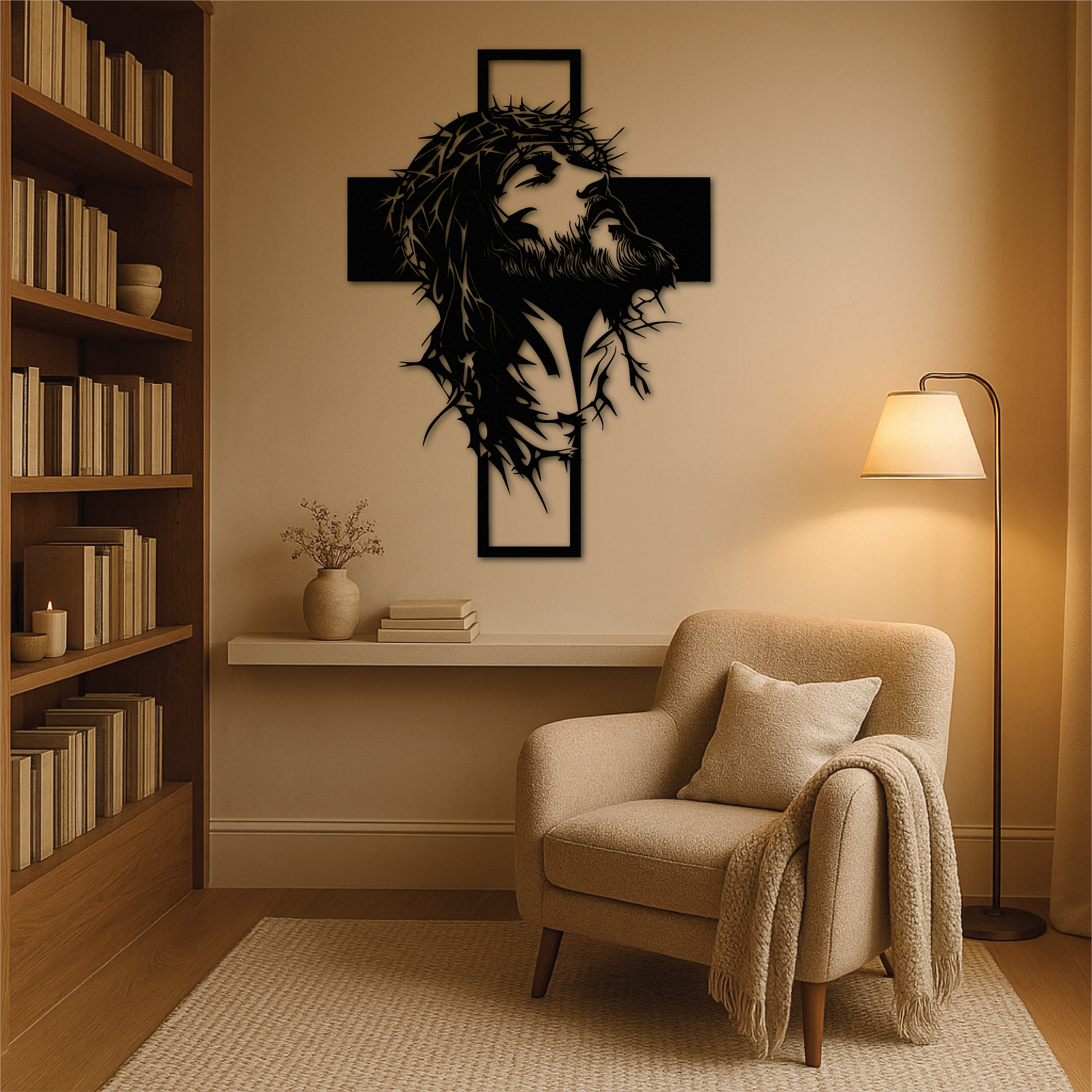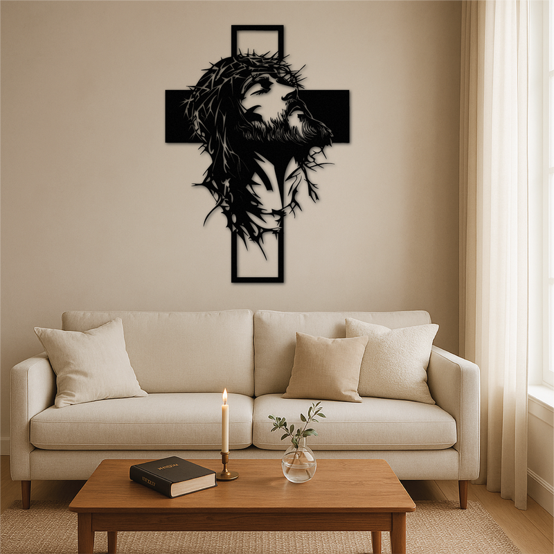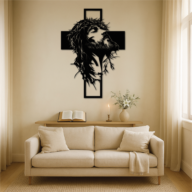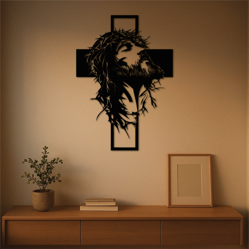 Designed for believers who seek to express their faith through meaningful decor, this piece makes a commanding statement in bedrooms, living rooms, prayer corners, or churches. The silhouette style and layered composition add dimension and shadow, creating an emotional and visual impact from every angle.