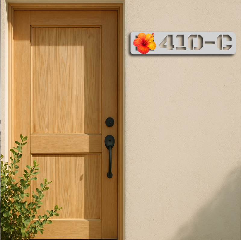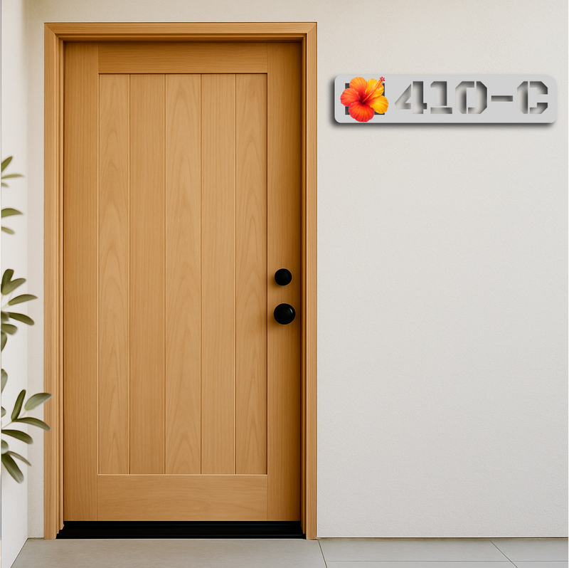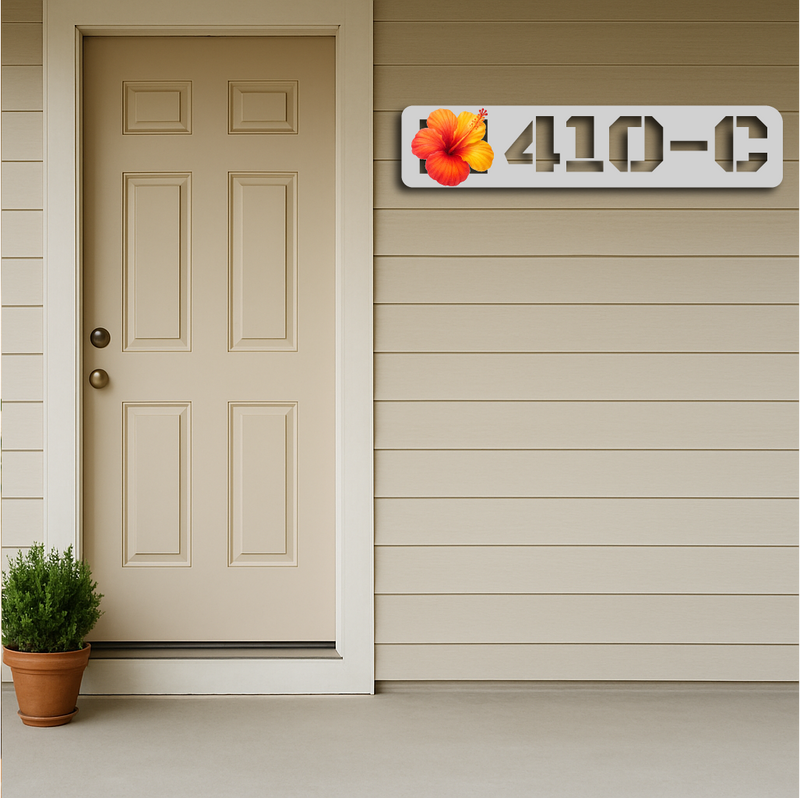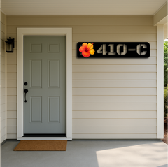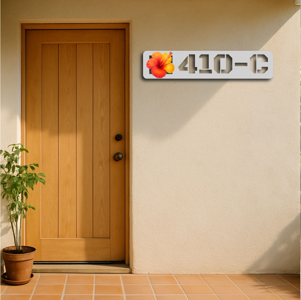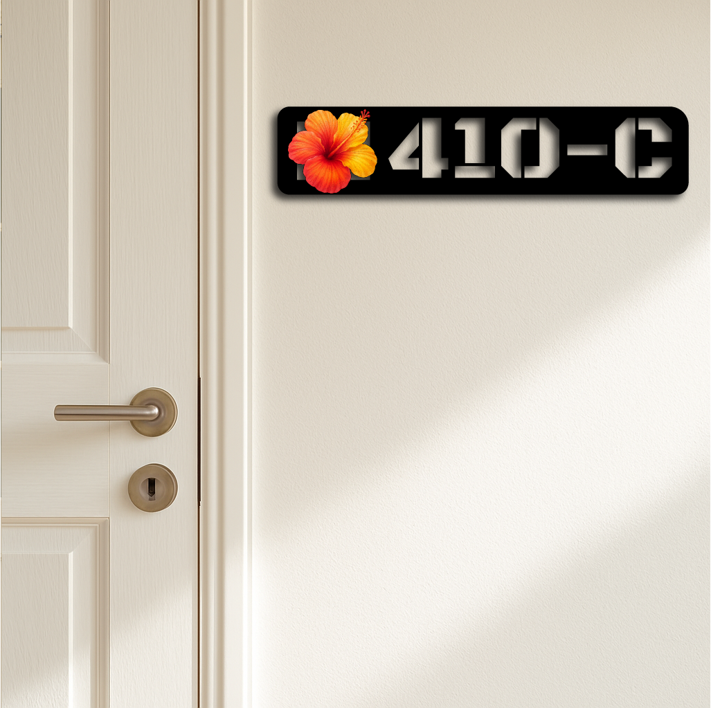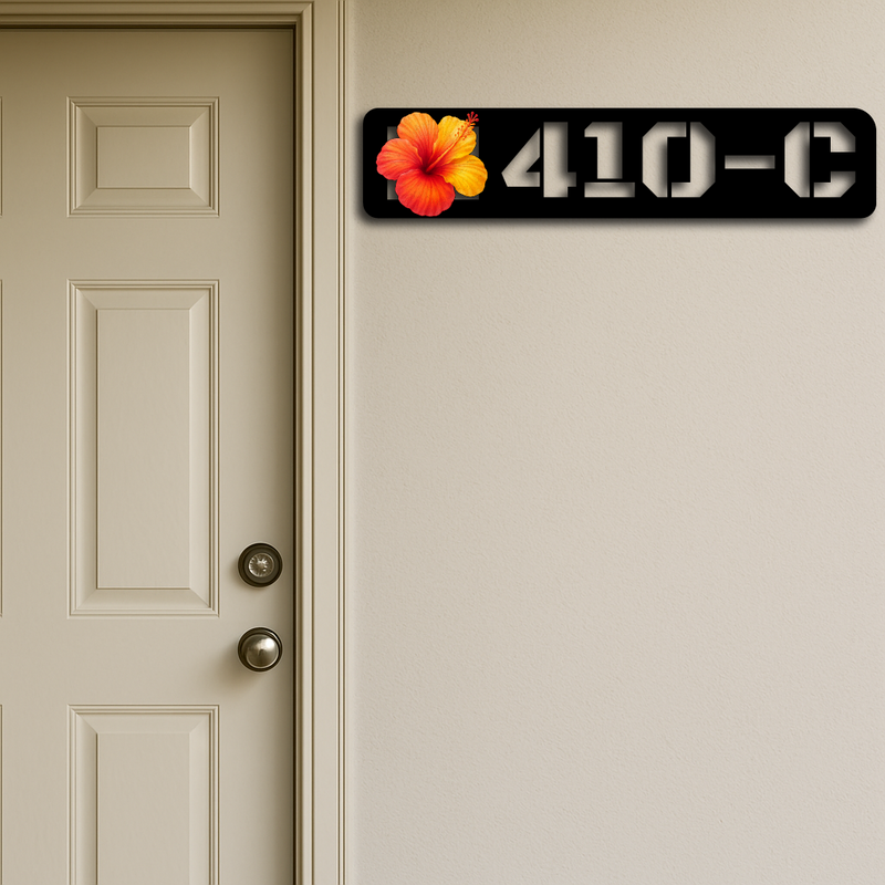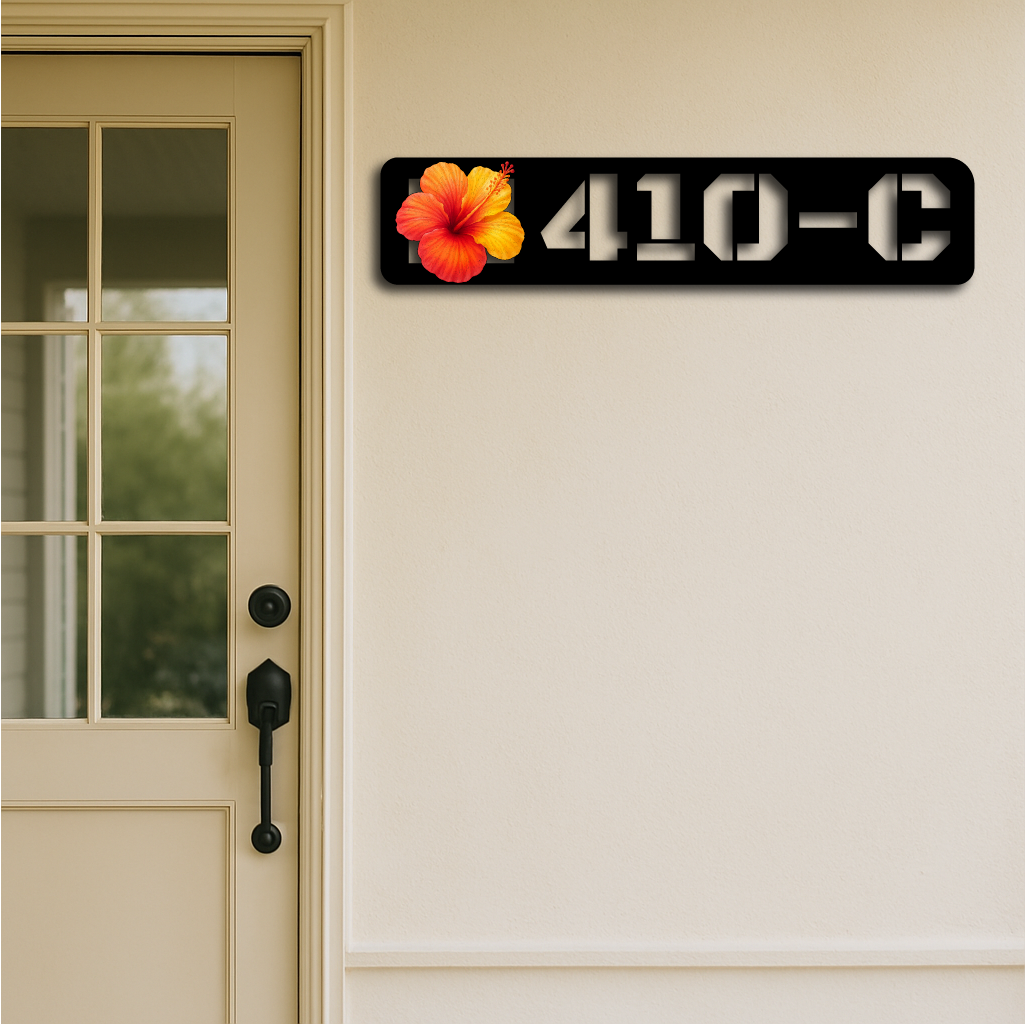 Custom Hibiscus House Number Sign – Tropical Floral Metal Plaque