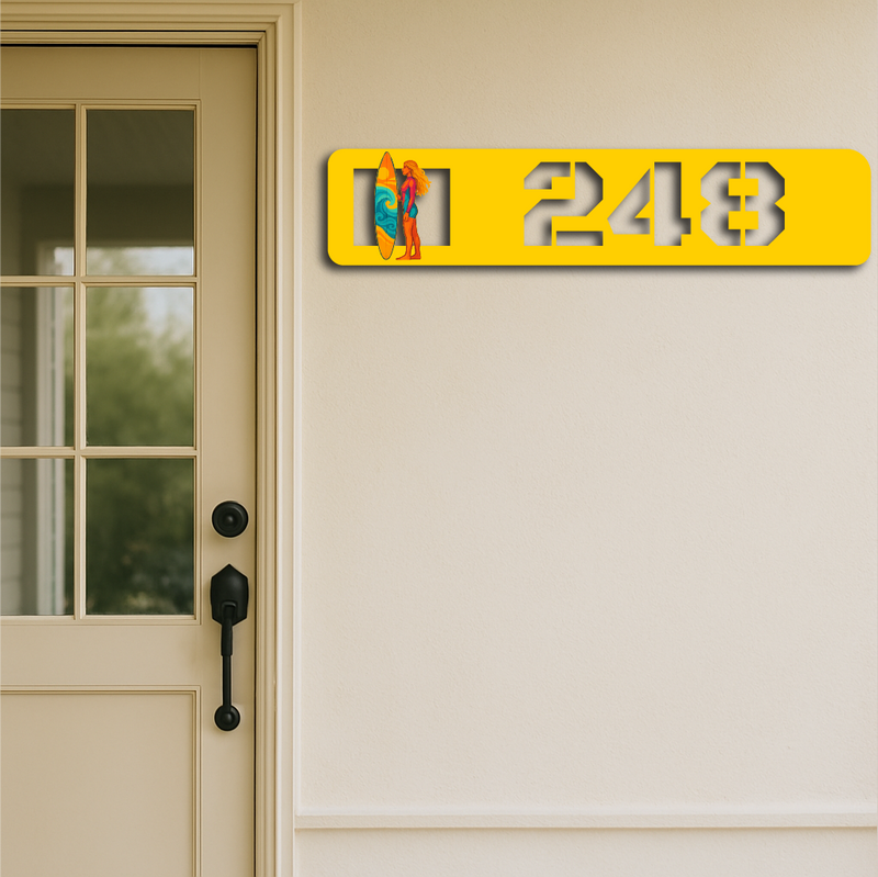 Custom Surfer Girl Metal House Number Sign – Coastal Beach Address Plaque