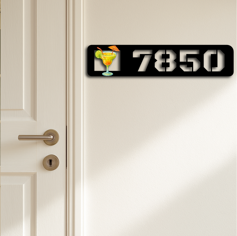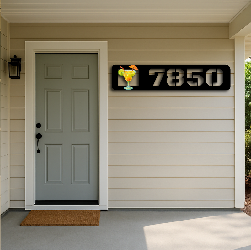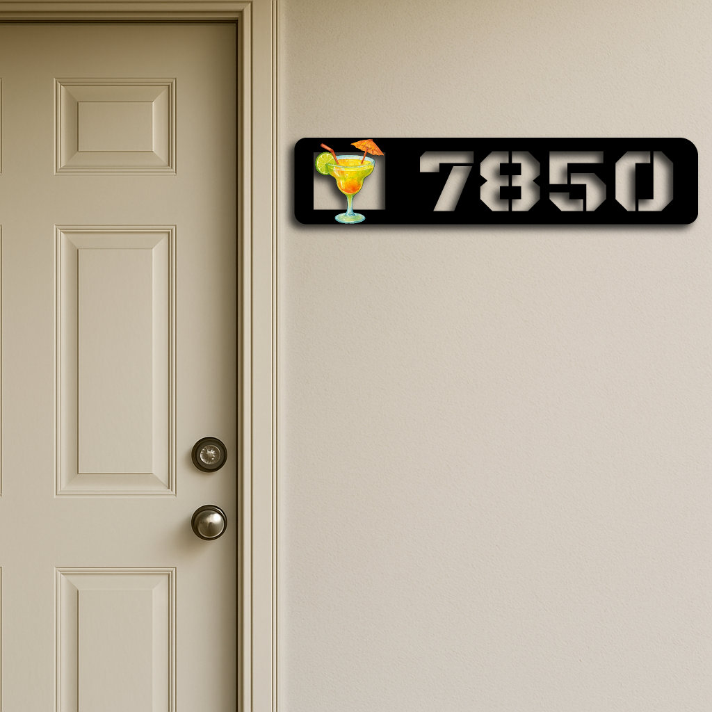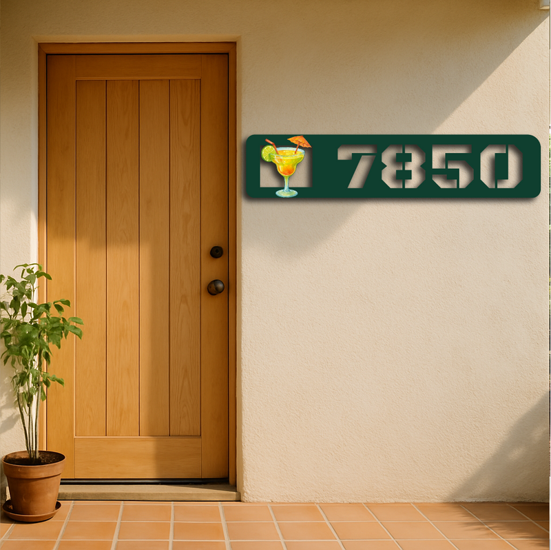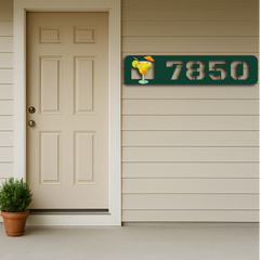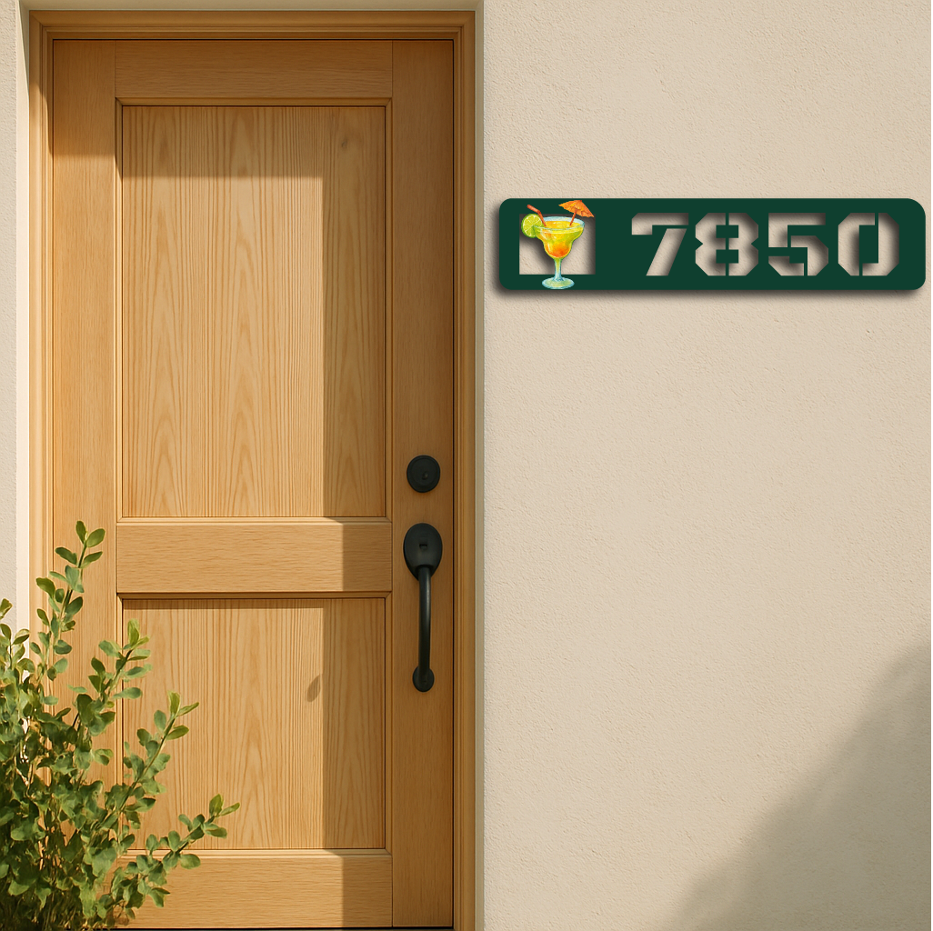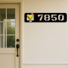 Add a splash of fun and a vacation vibe to your home with this Cocktail Theme Metal House Number Sign, featuring a colorful drink with lime, orange slice, and umbrella. Perfect for beach houses, poolside bars, and tropical-style homes. Crafted from durable metal with multicolor UV printing for vivid, fade-resistant colors.