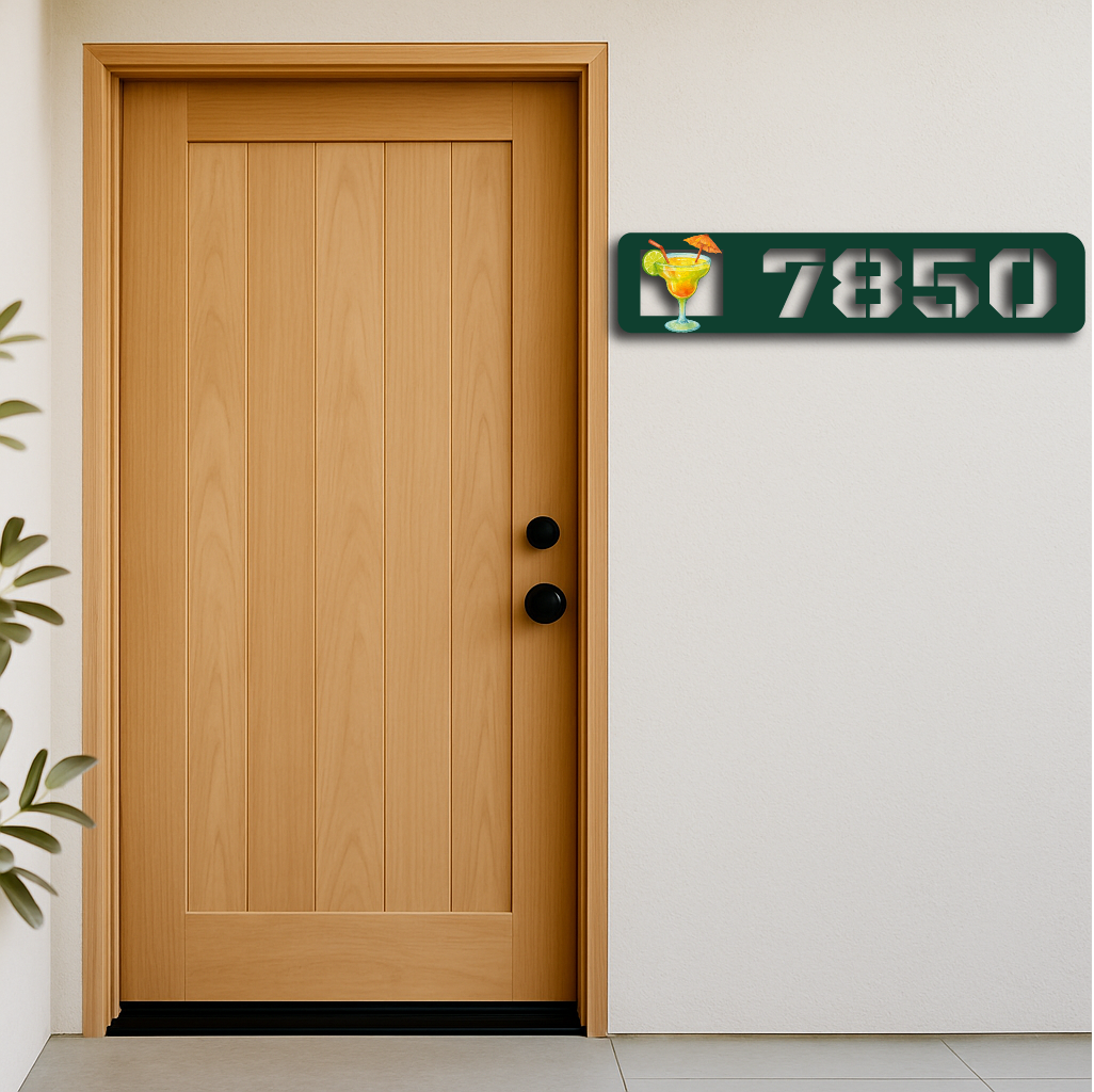 Custom Cocktail House Number Sign – Tropical Metal Address Plaque