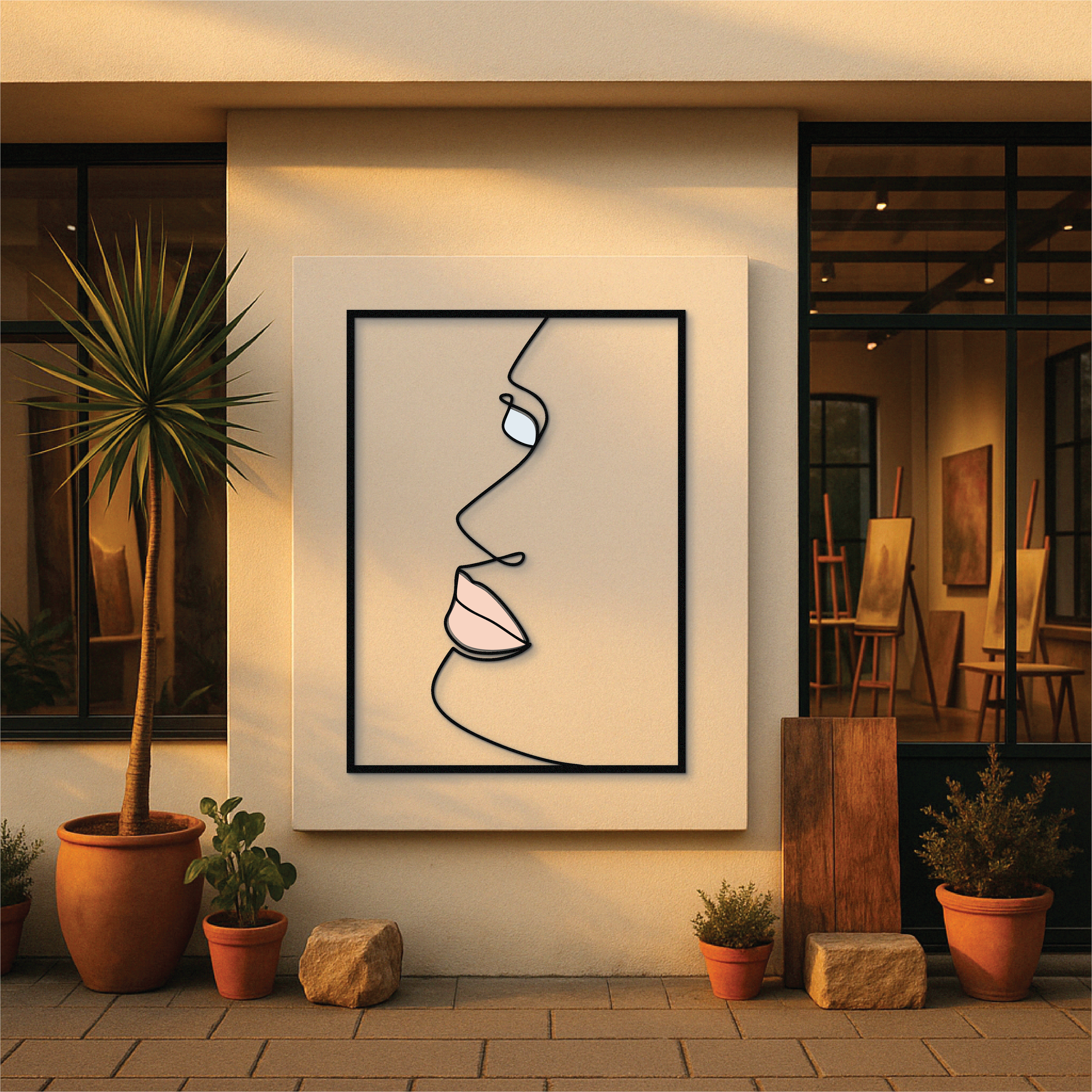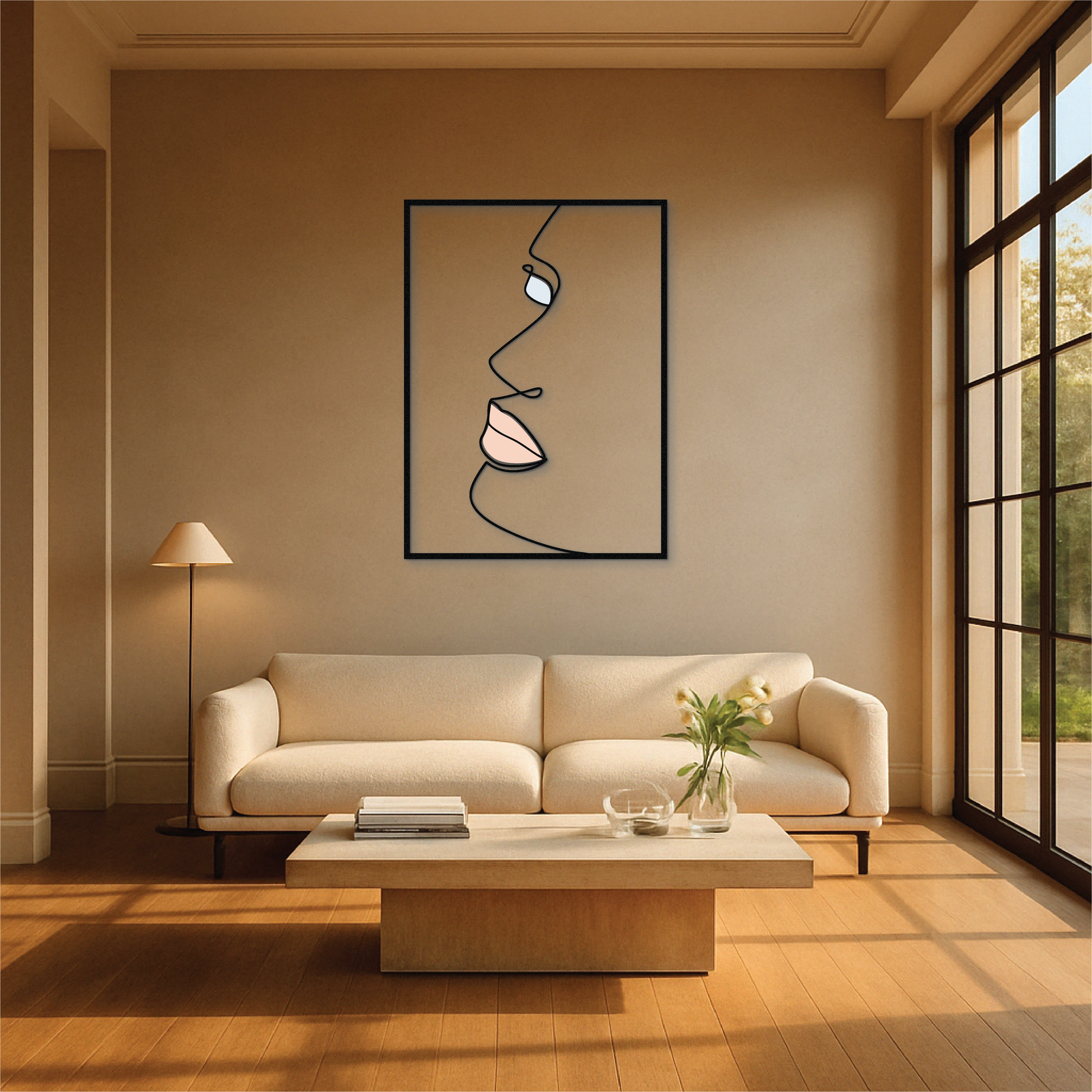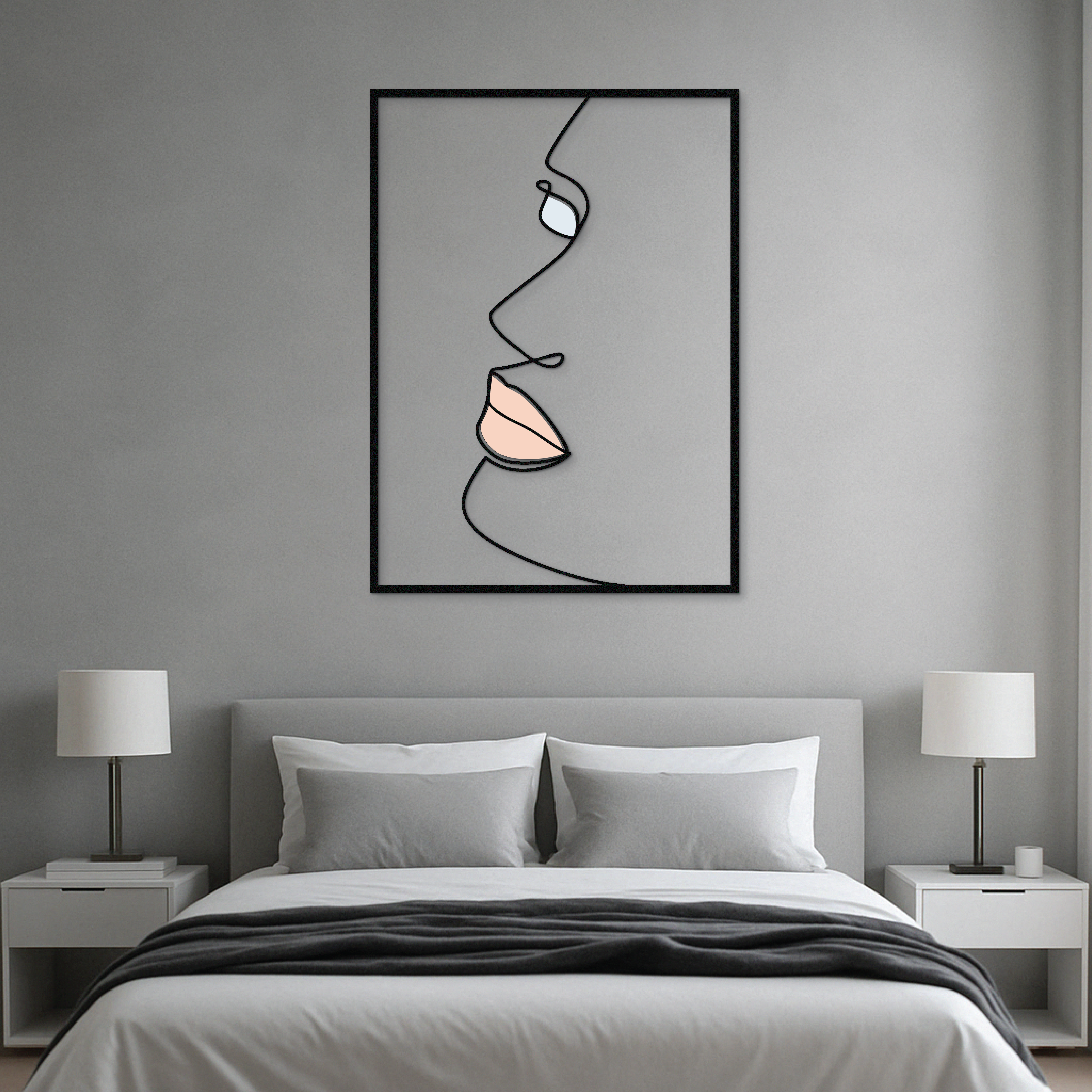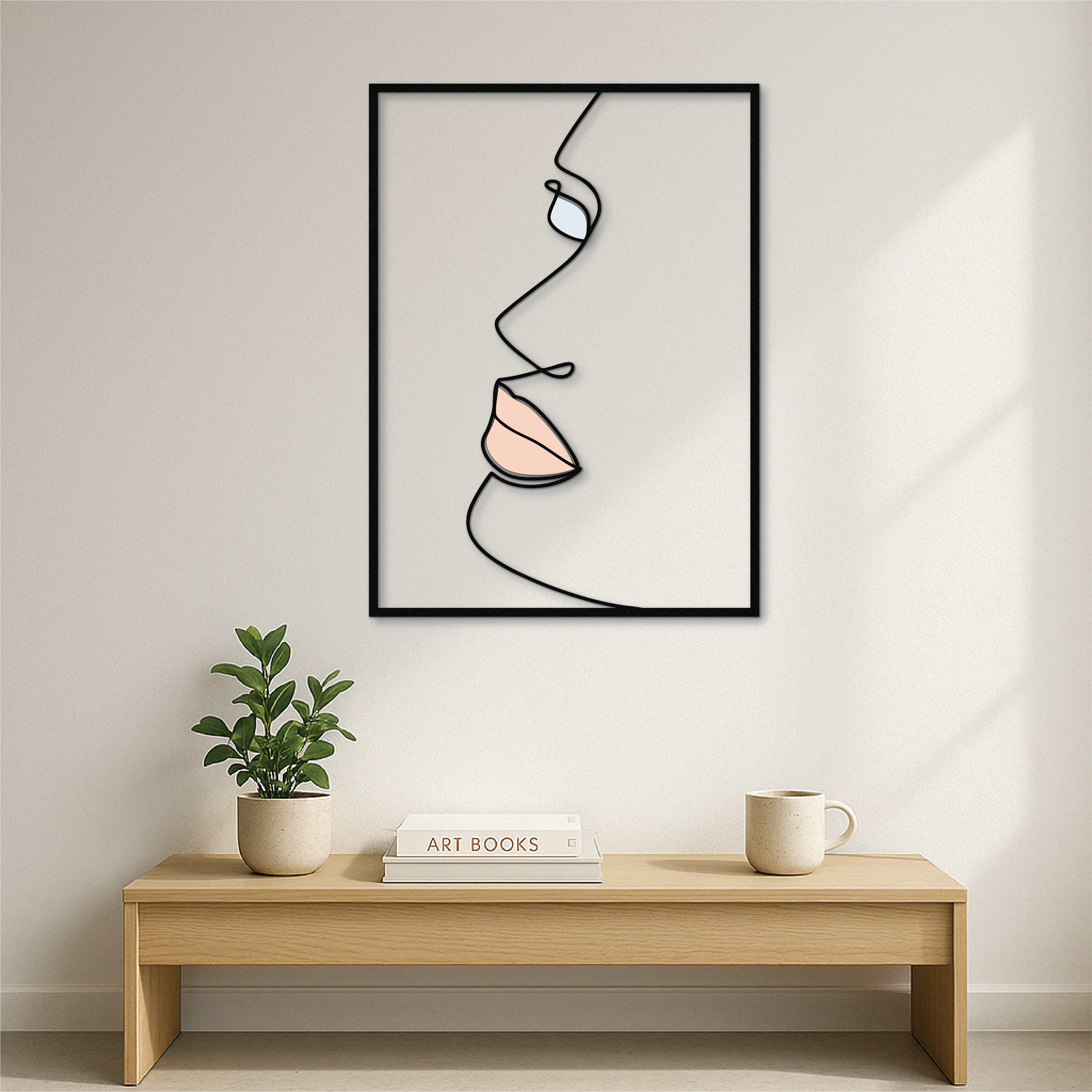 This modern side-profile face wall art is a study in elegance and simplicity. Crafted from solid metal and UV printed with delicate nude and pastel tones, it brings minimalist sophistication to any room. The flowing one-line design creates a soft, emotional presence — perfect for quiet, refined interiors.