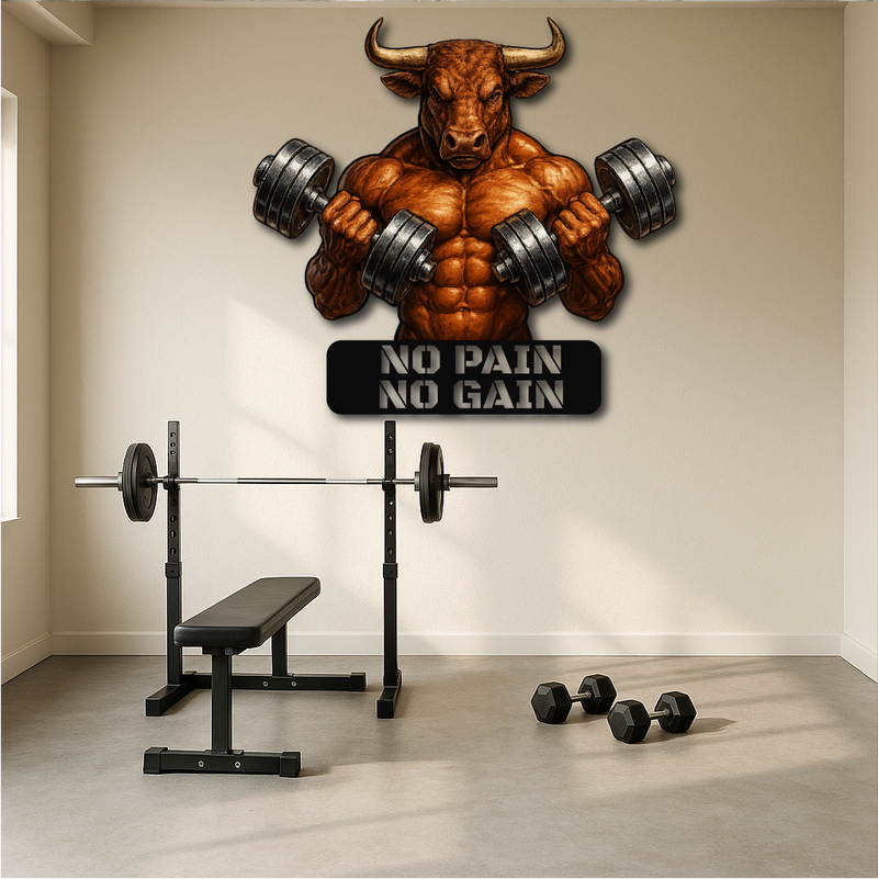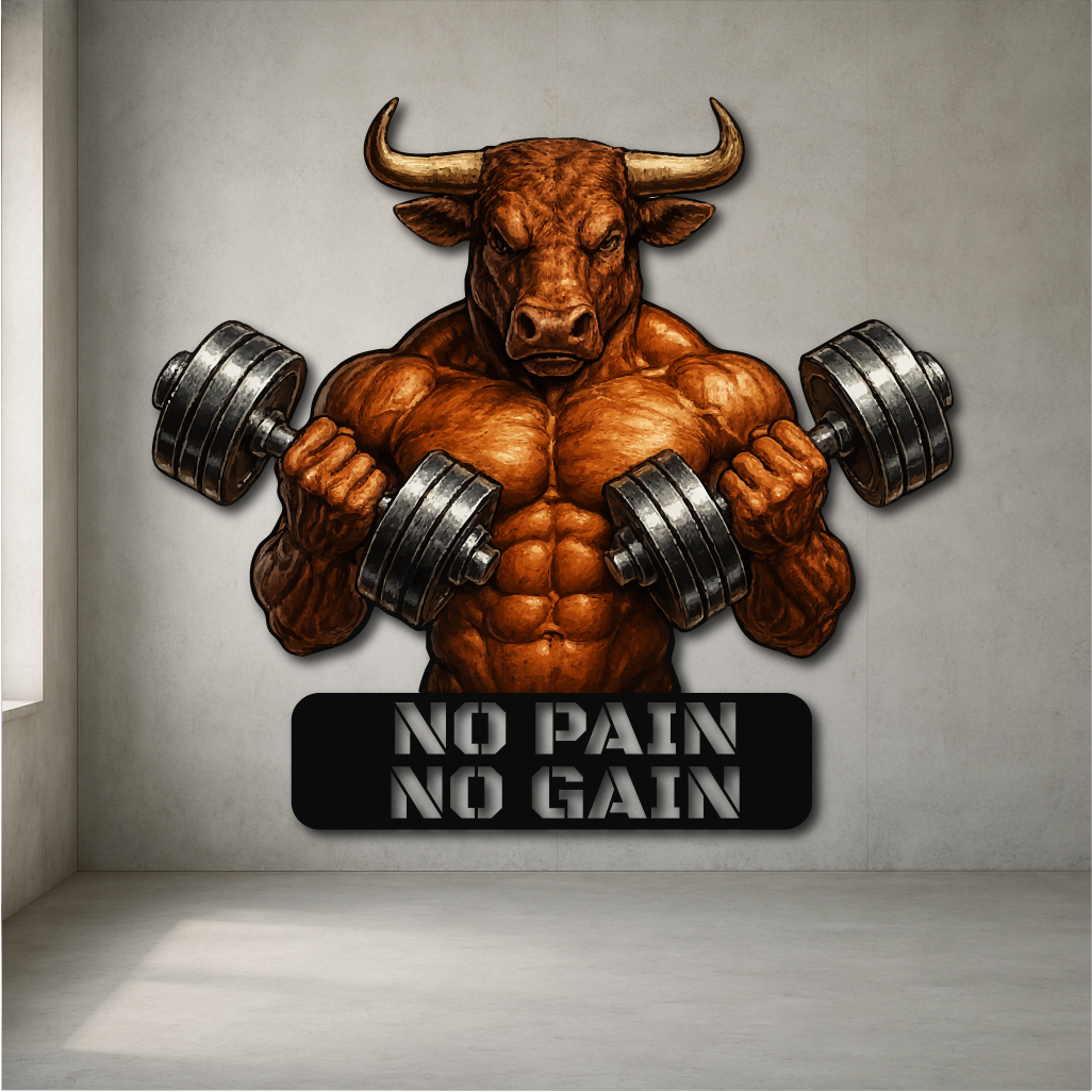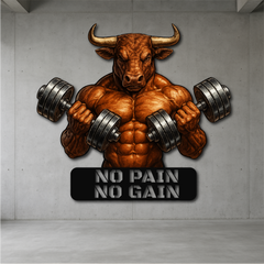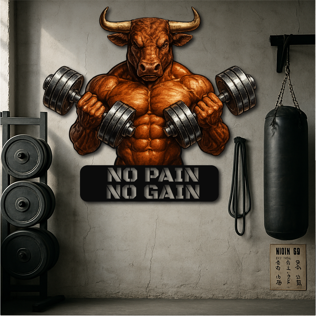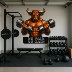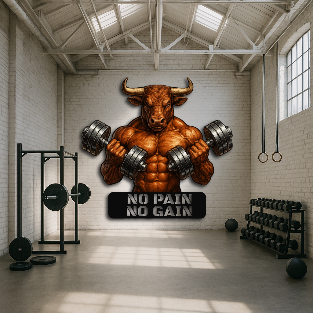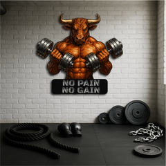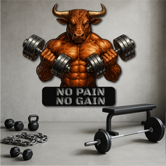 Unleash raw strength with the Beast Mode Custom Gym Sign — featuring a shredded, dumbbell-wielding bull that captures the essence of power and grit. This multicolor metal masterpiece is a symbol of discipline and domination, perfect for those who live by the motto: "No Pain, No Gain."