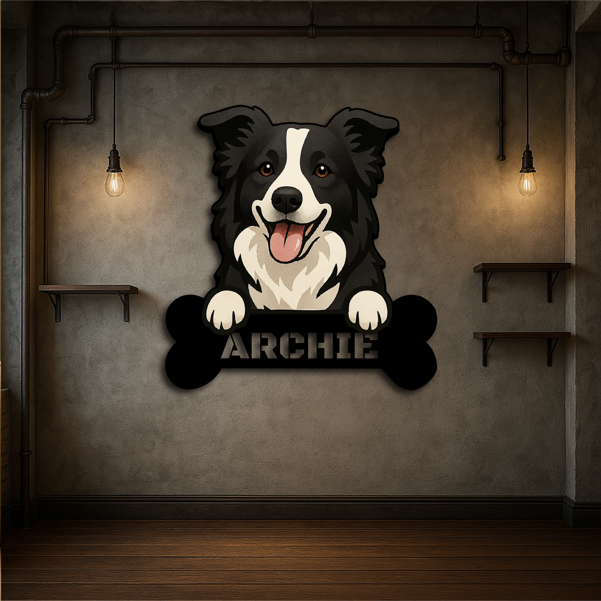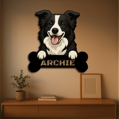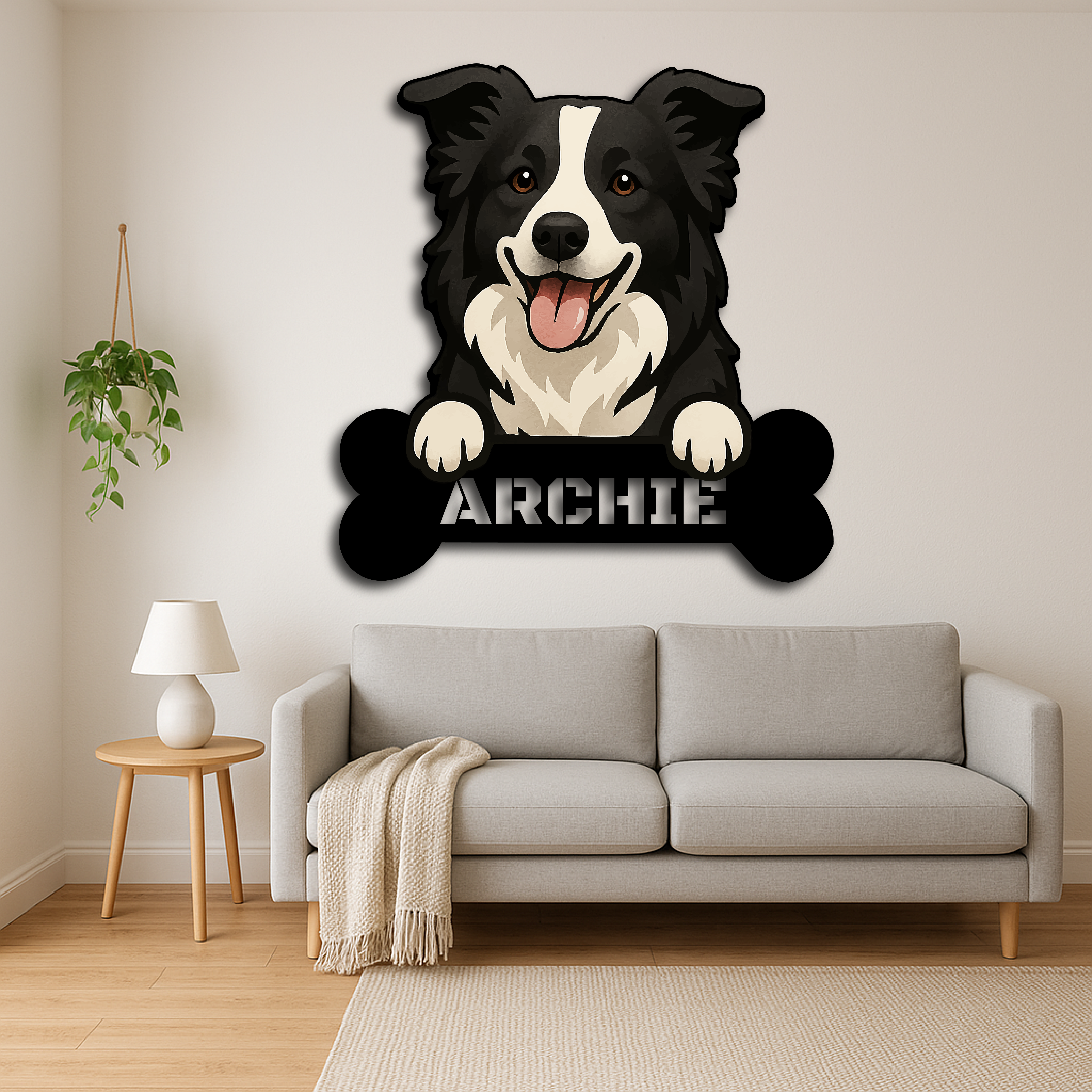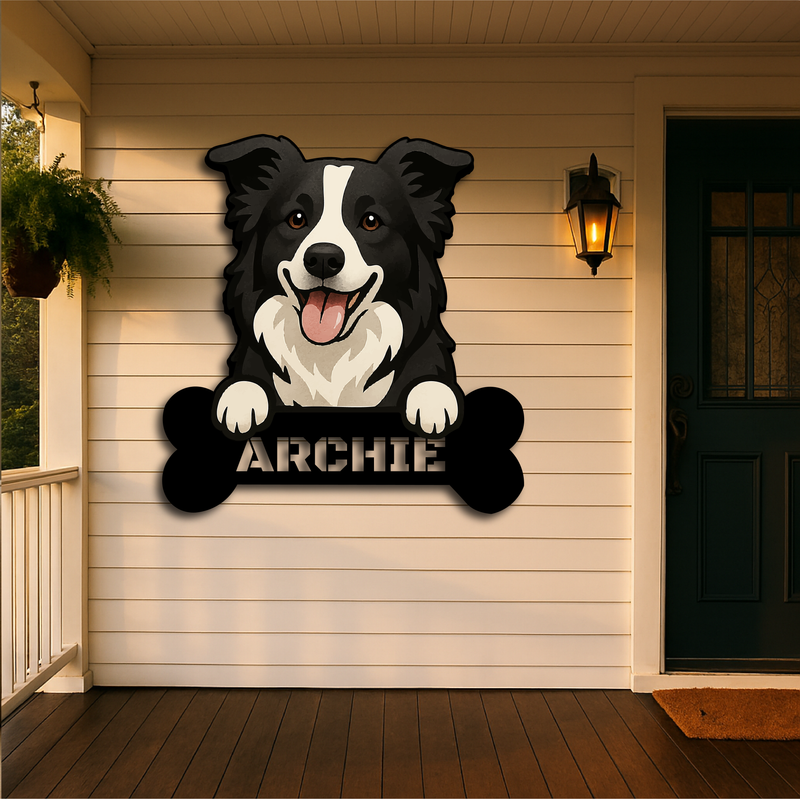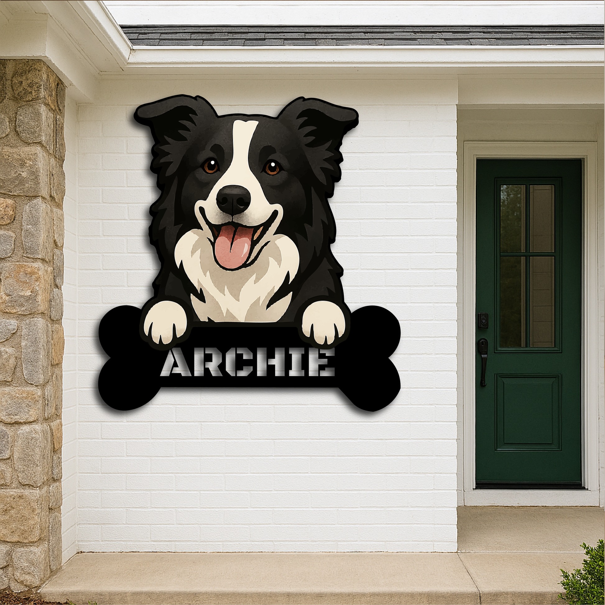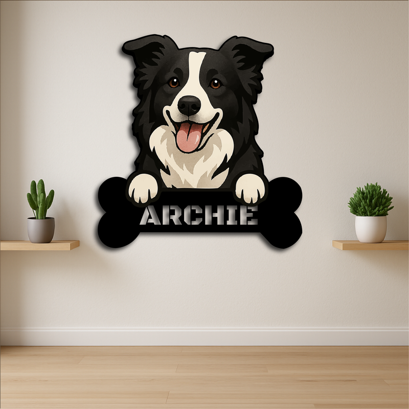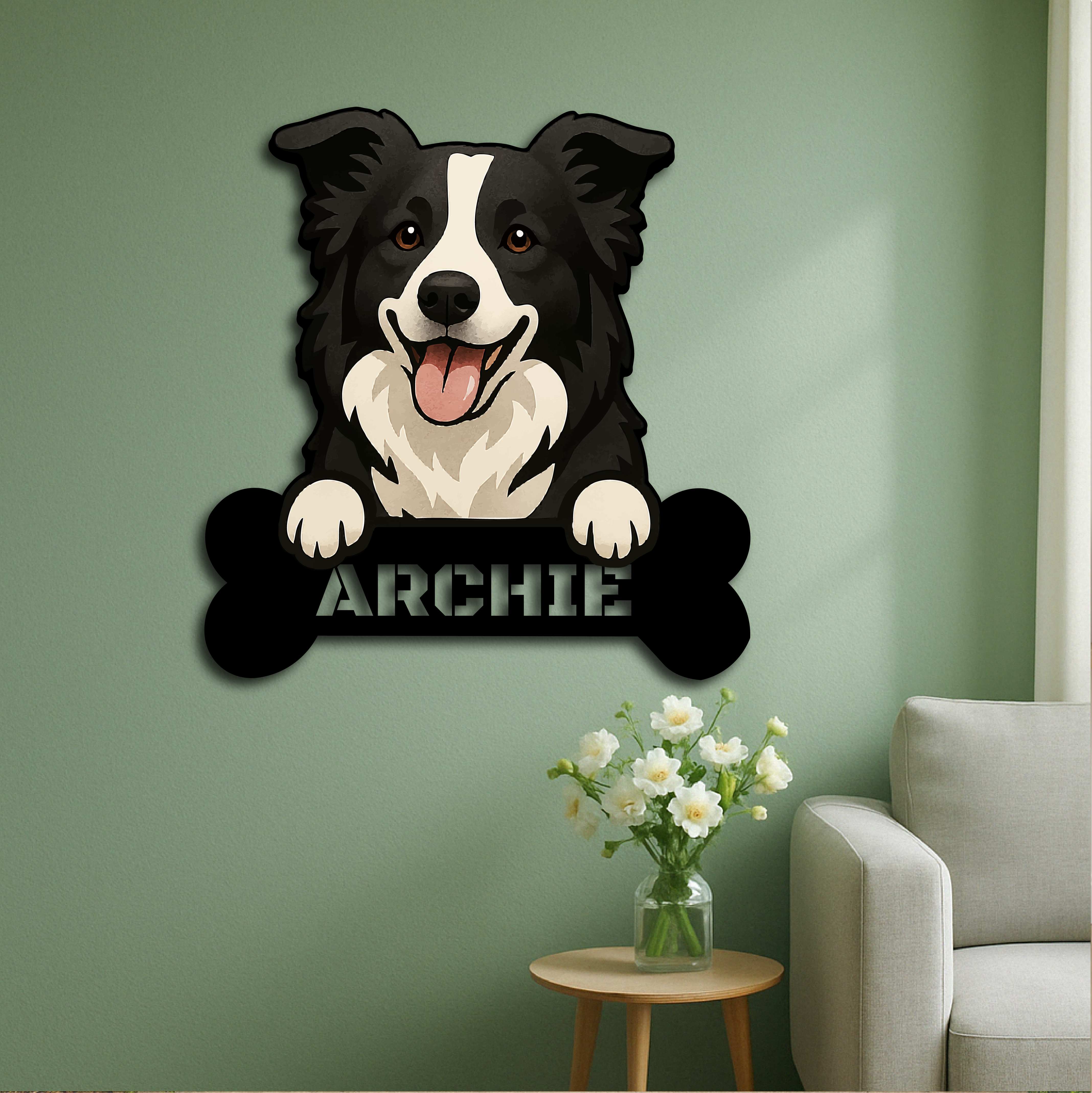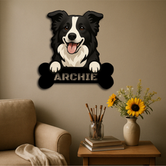 Custom Border Collie Dog Name Sign – Personalized Pet Wall Decor with Bone Plaque