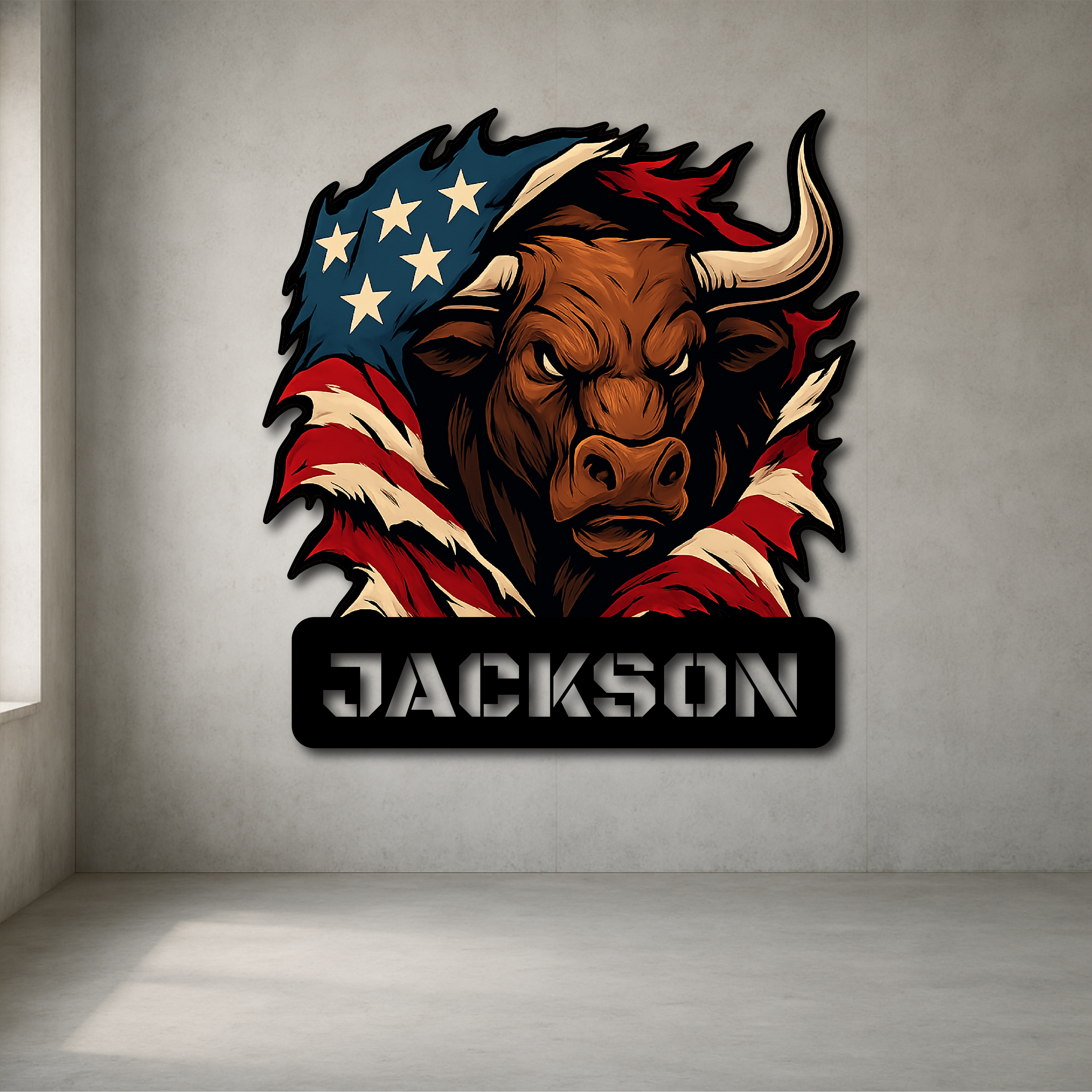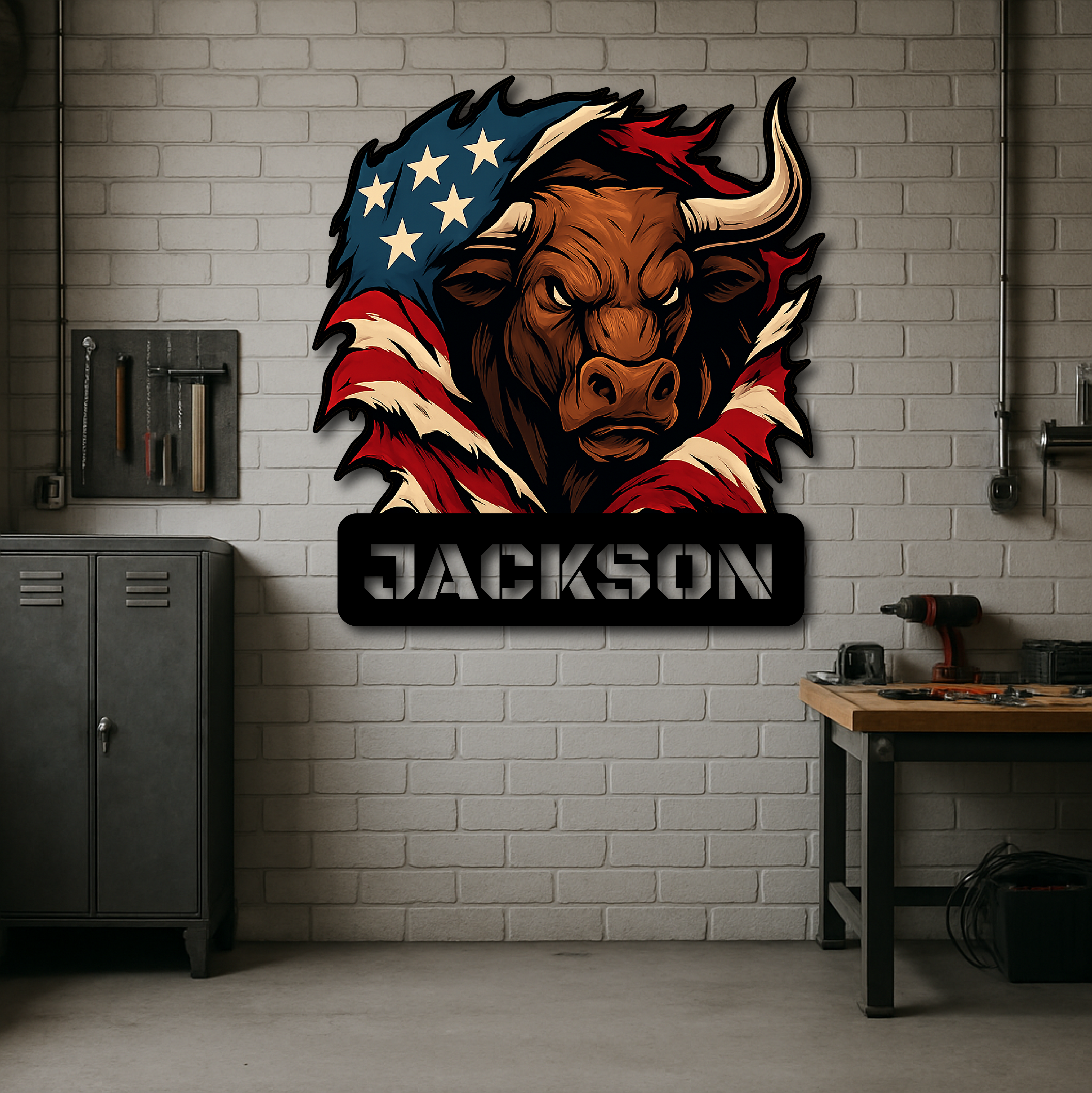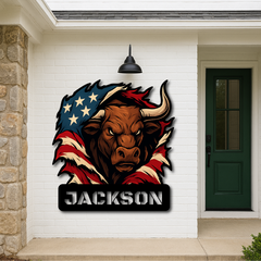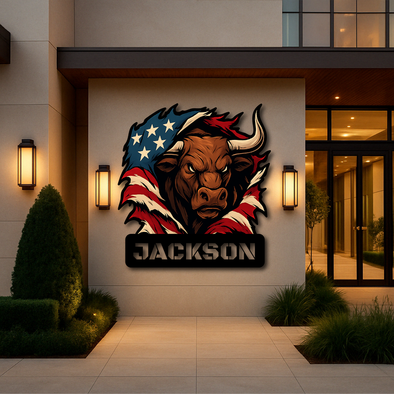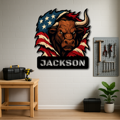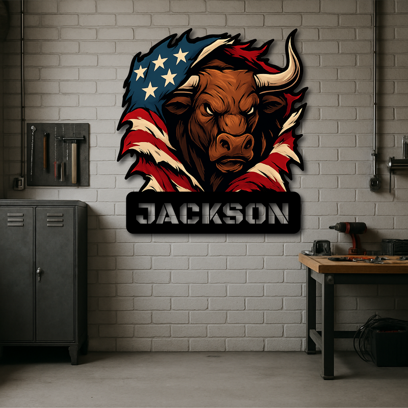 Custom American Bull Metal Wall Sign – Bold Patriotic Decor for Garage, Farmhouse & Man Cave
