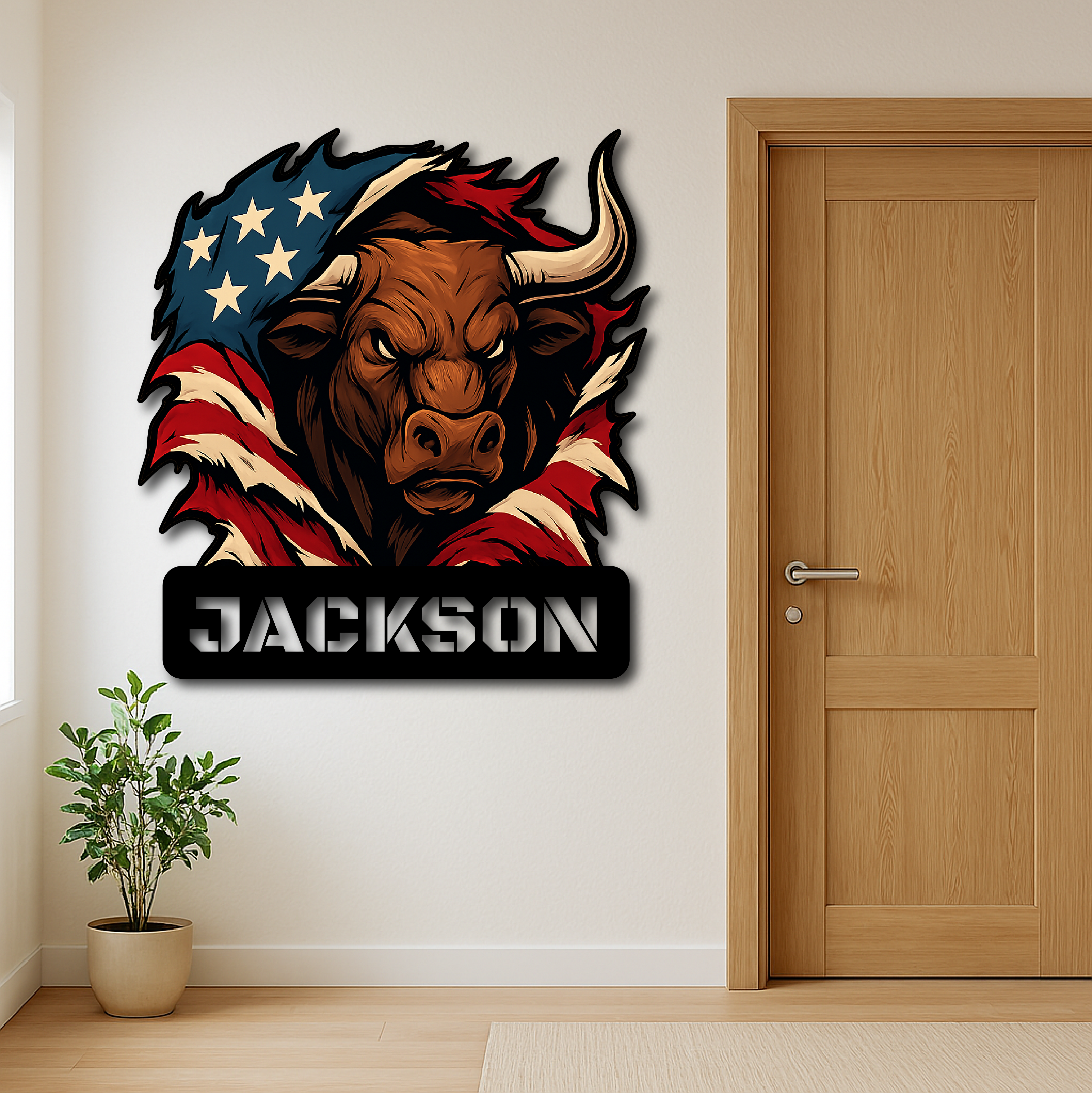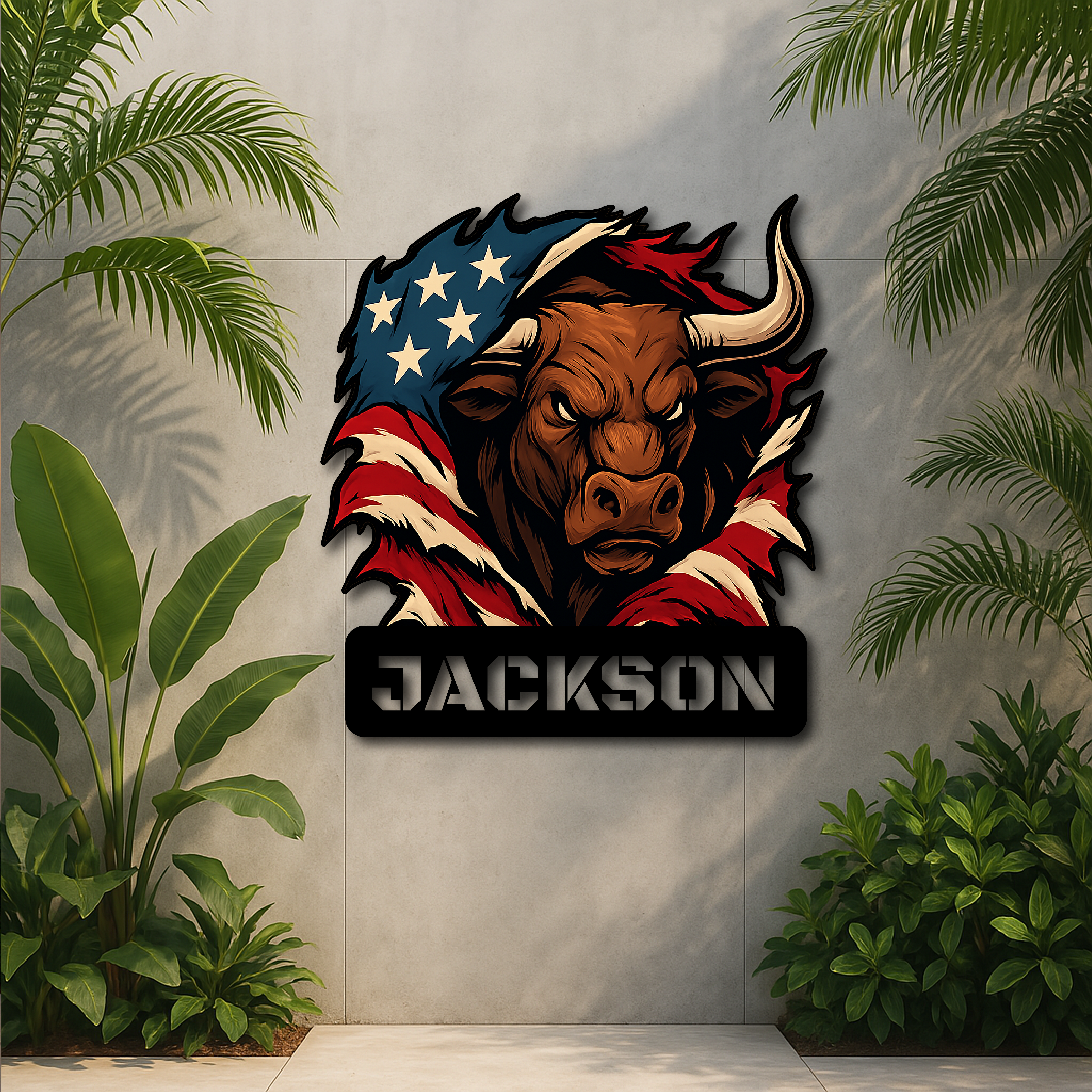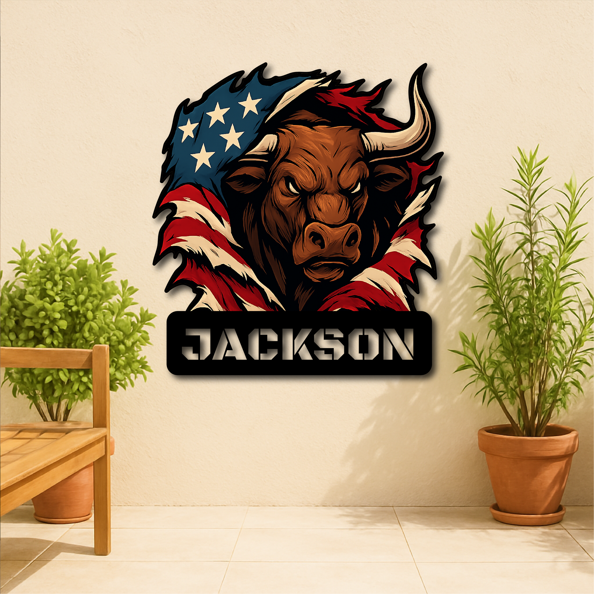 Custom American Bull Metal Wall Sign – Bold Patriotic Decor for Garage, Farmhouse & Man Cave