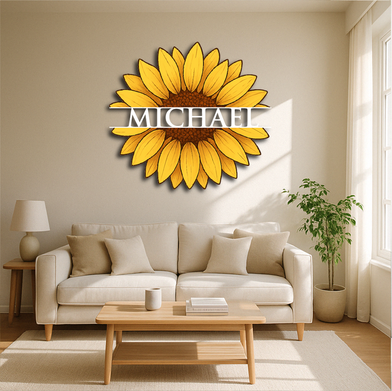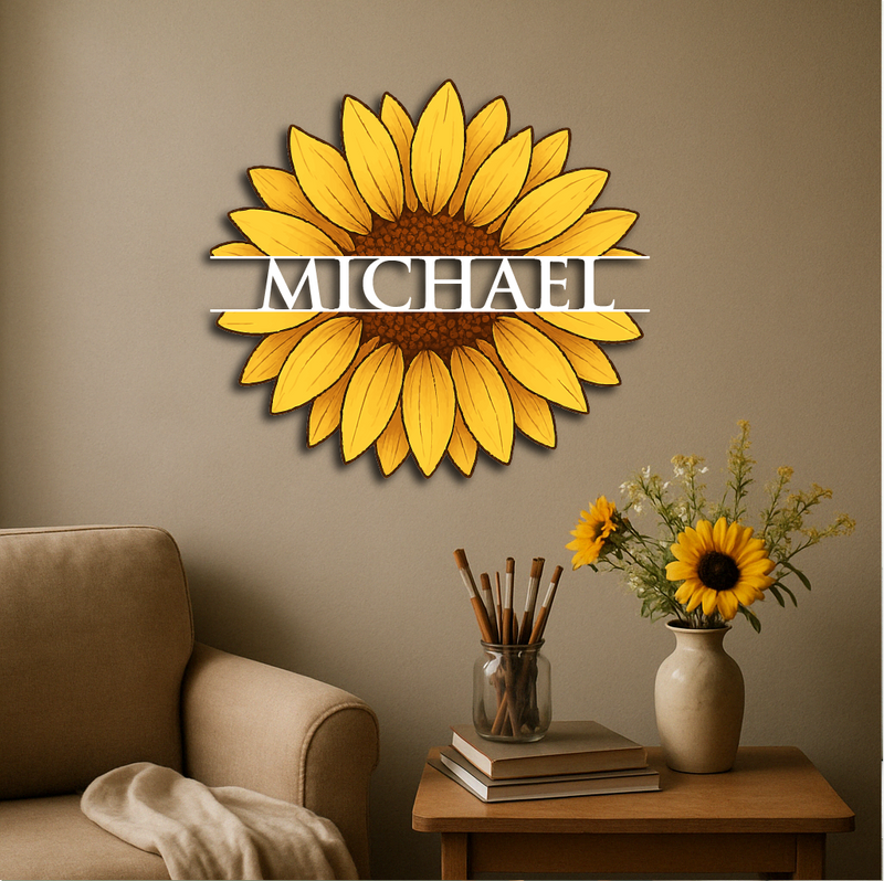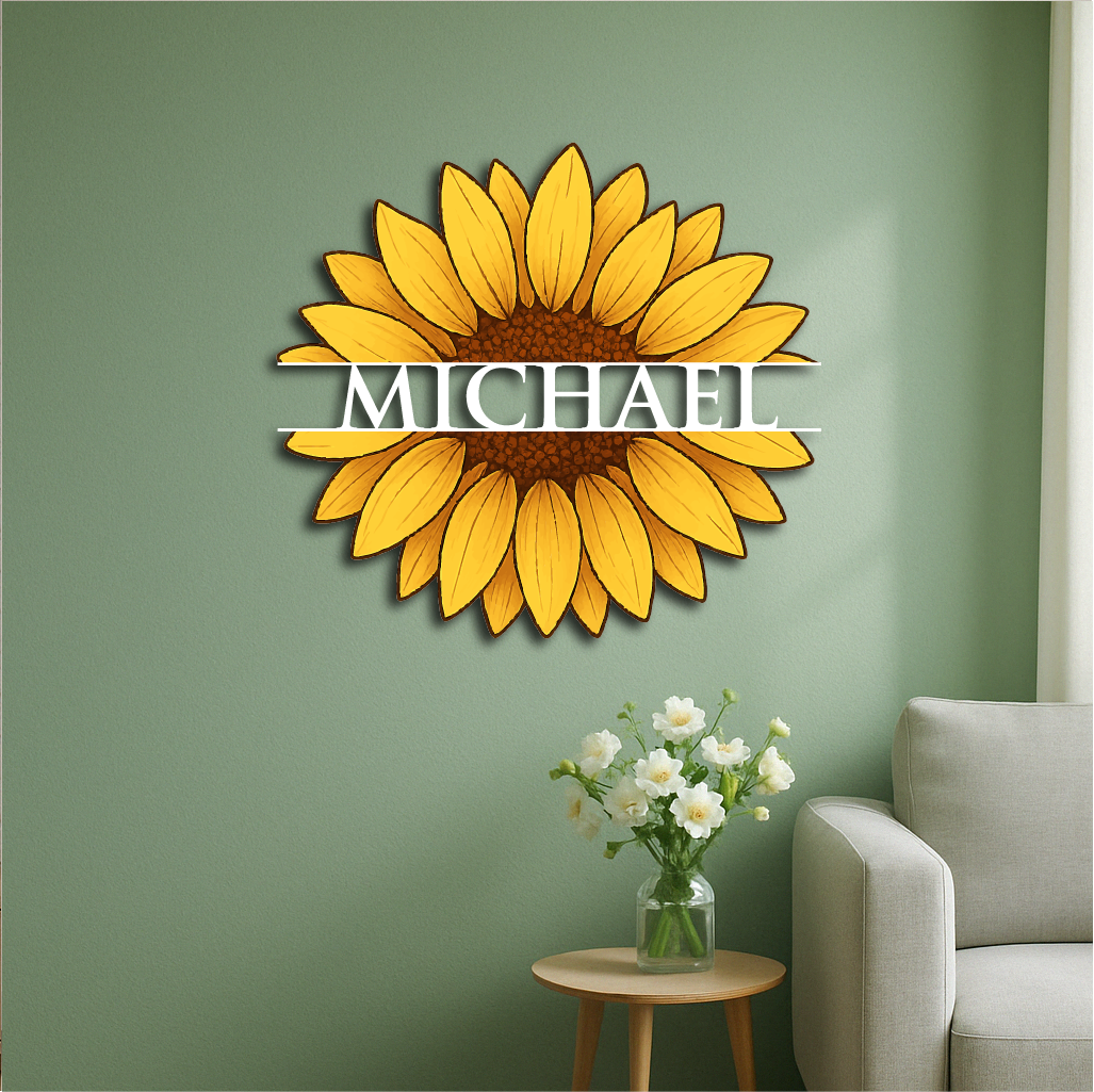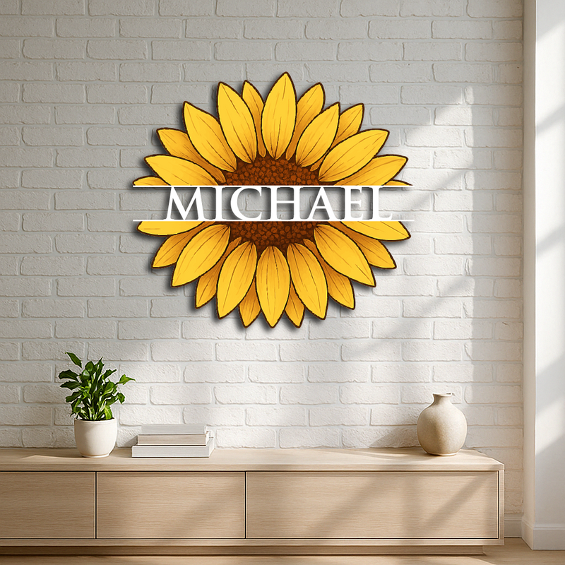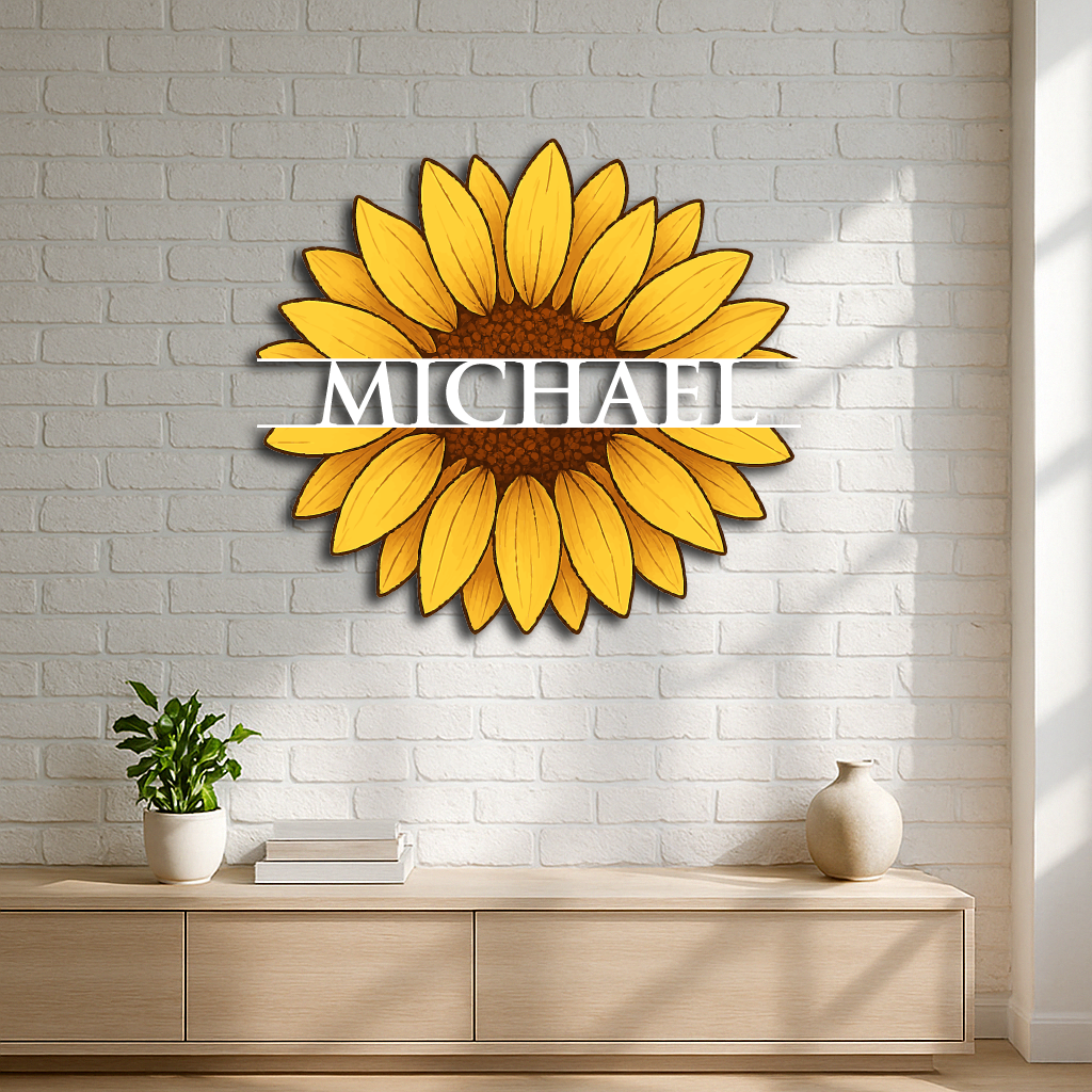 Personalized Sunflower Metal Wall Art – Custom Name Flower Décor