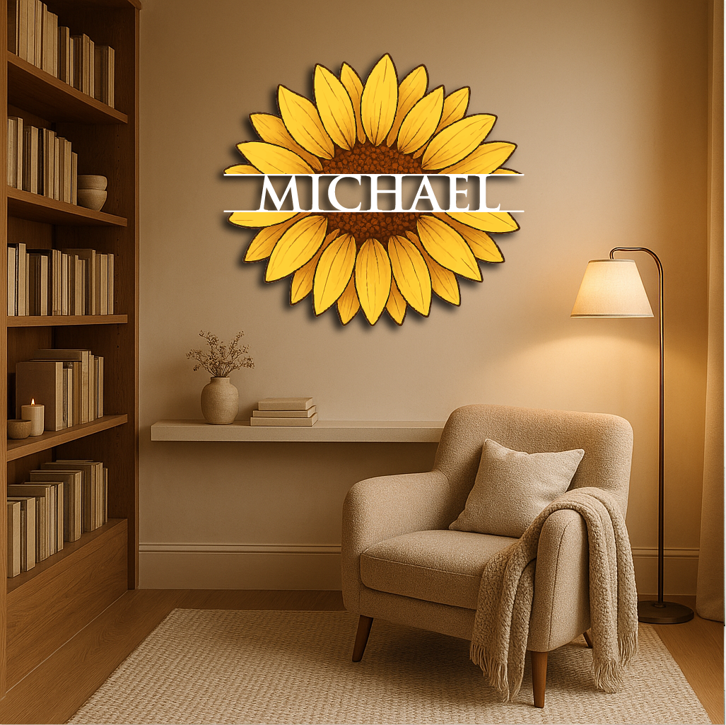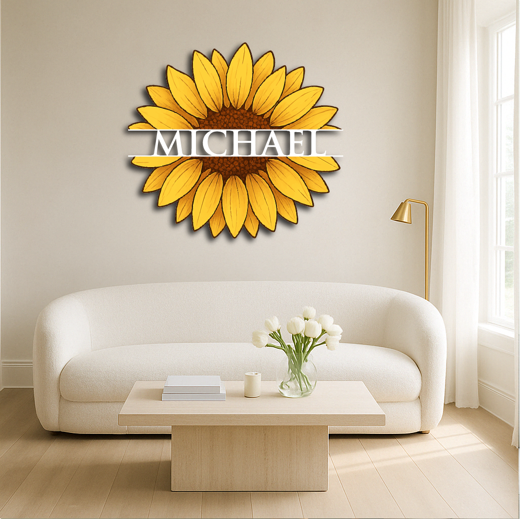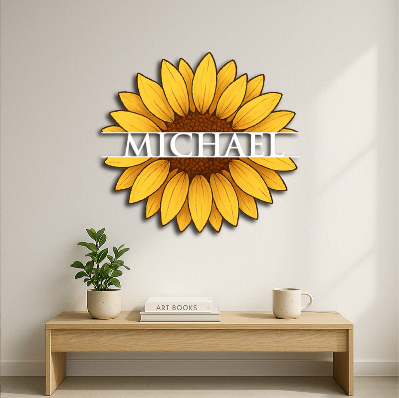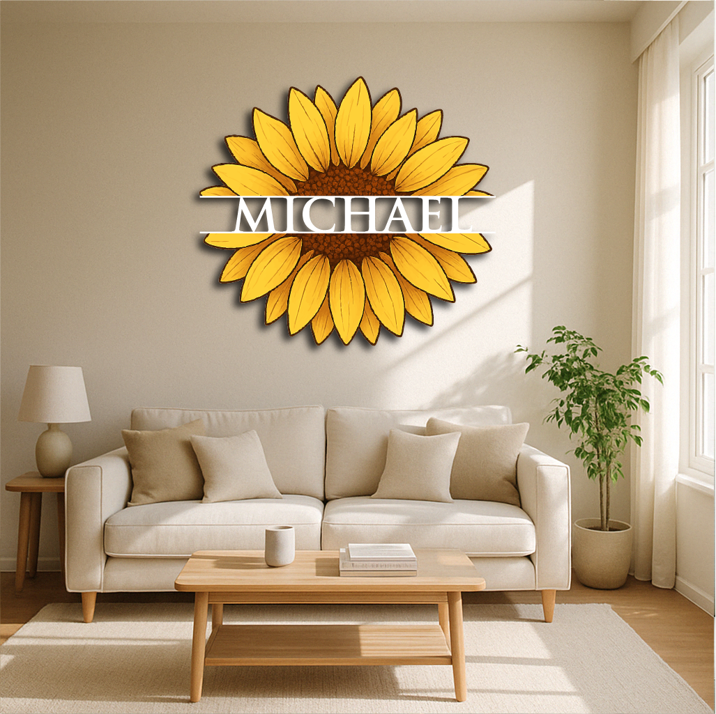 Personalized Sunflower Metal Wall Art – Custom Name Flower Décor