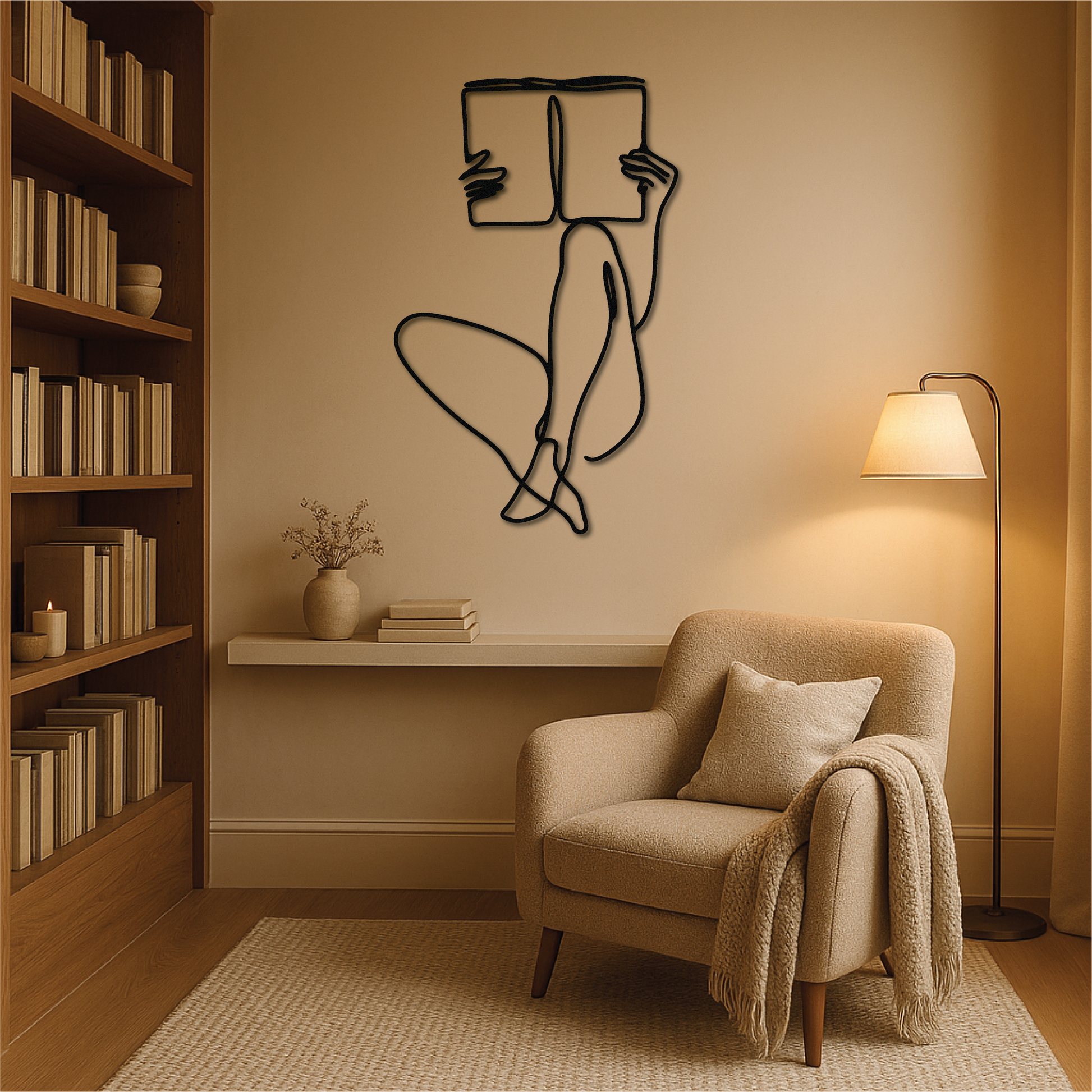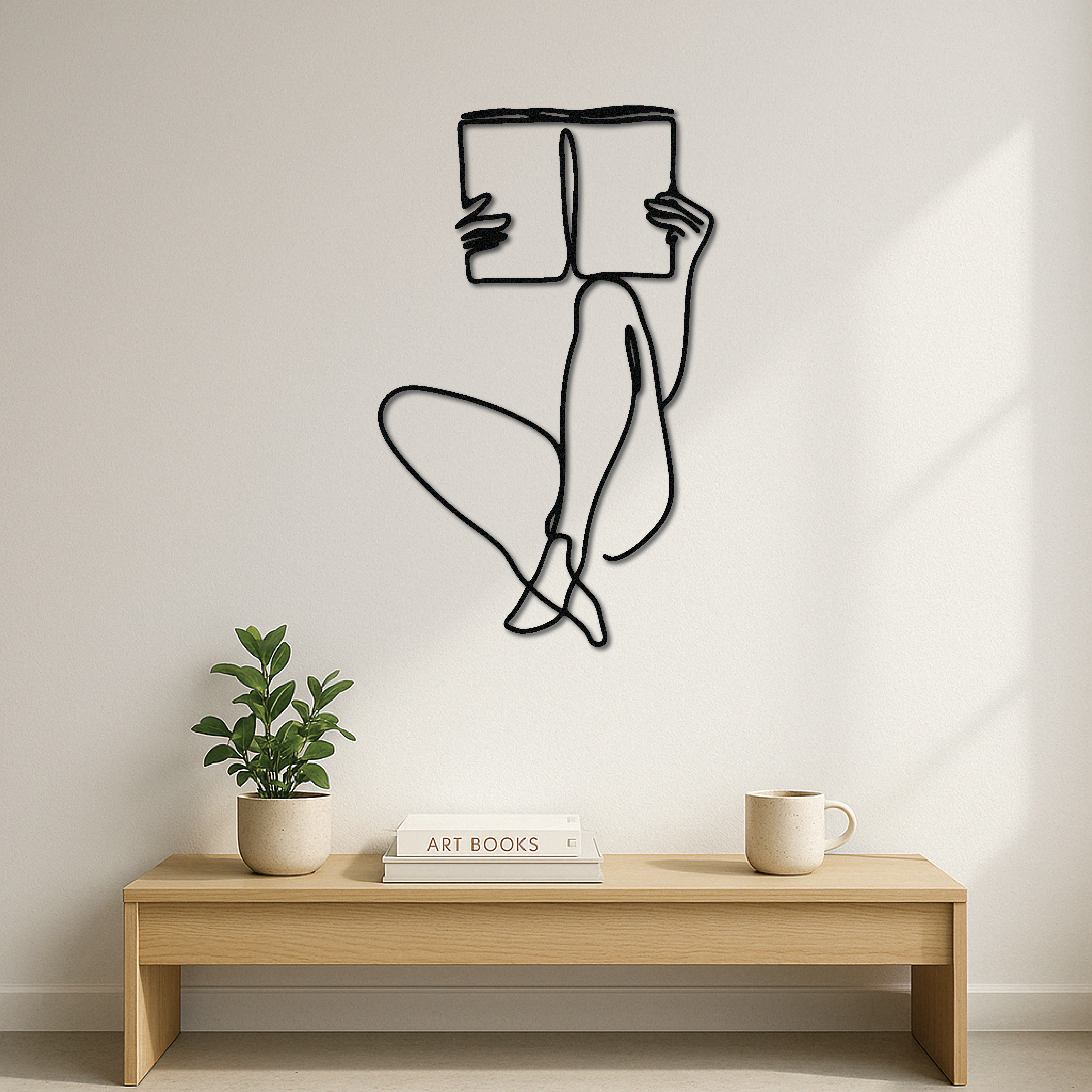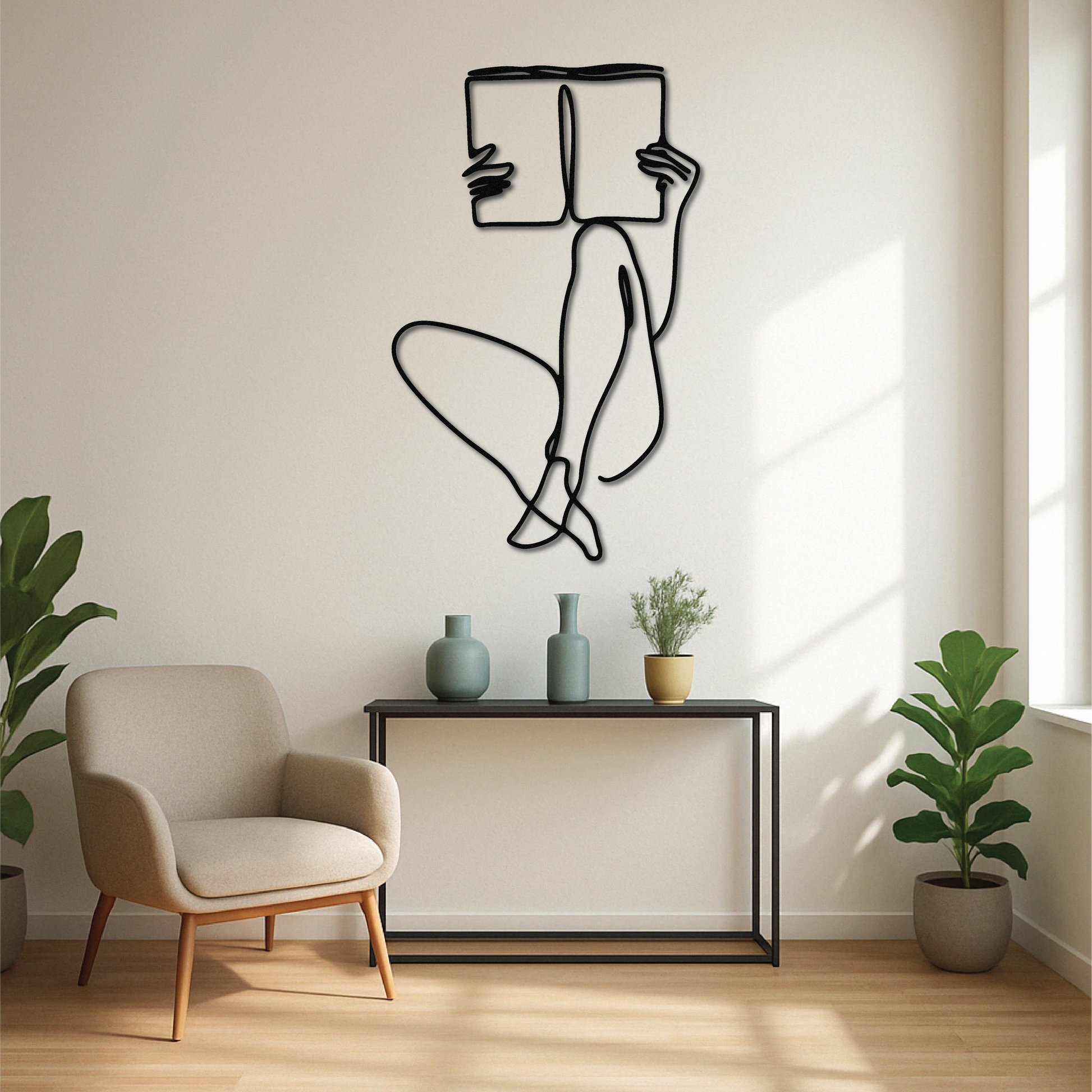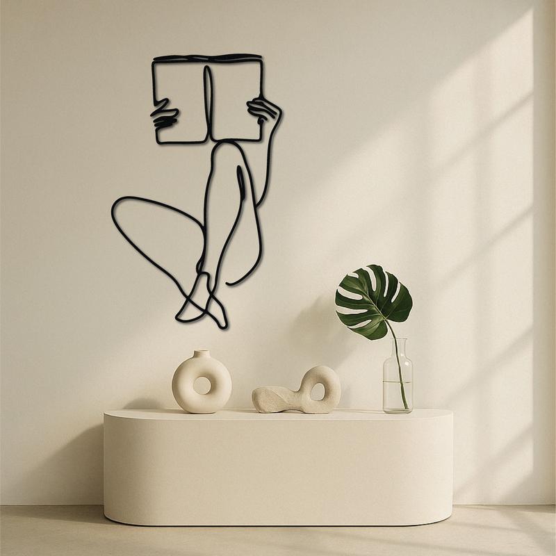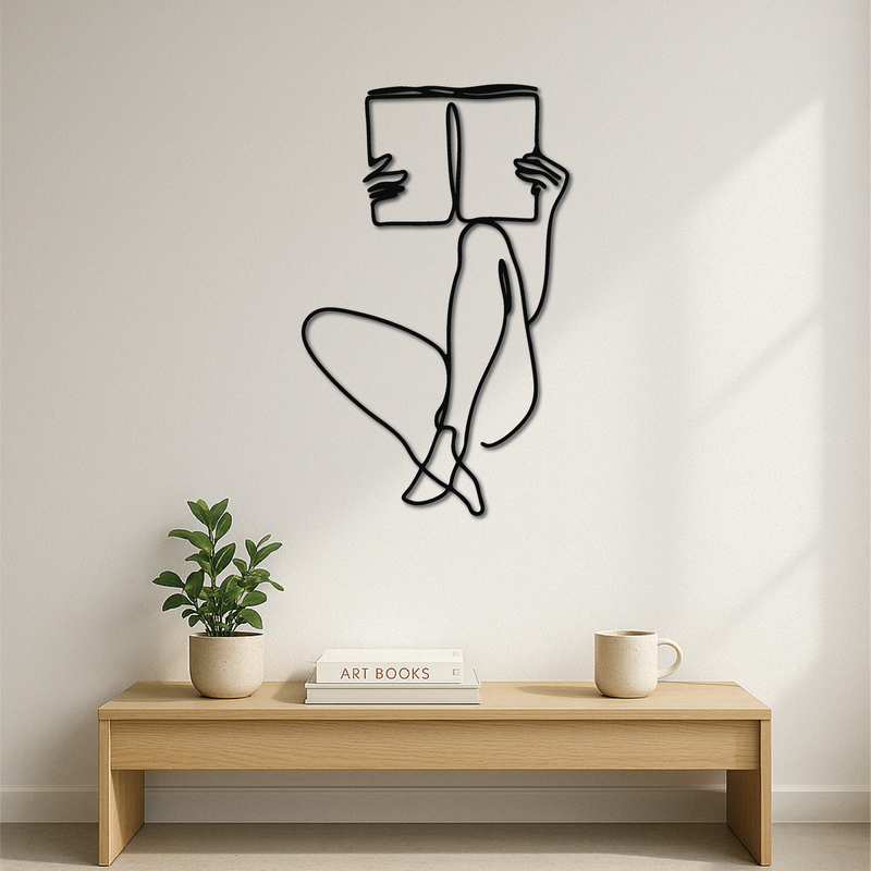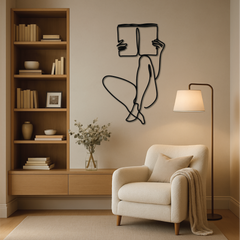 Celebrate calm, curiosity, and creativity with this elegant Reading Woman Metal Wall Art, crafted from solid powder-coated steel in a minimalist one-line silhouette. This unique wall sculpture captures the peaceful moment of a woman immersed in her book — a timeless tribute to quiet moments and personal space.