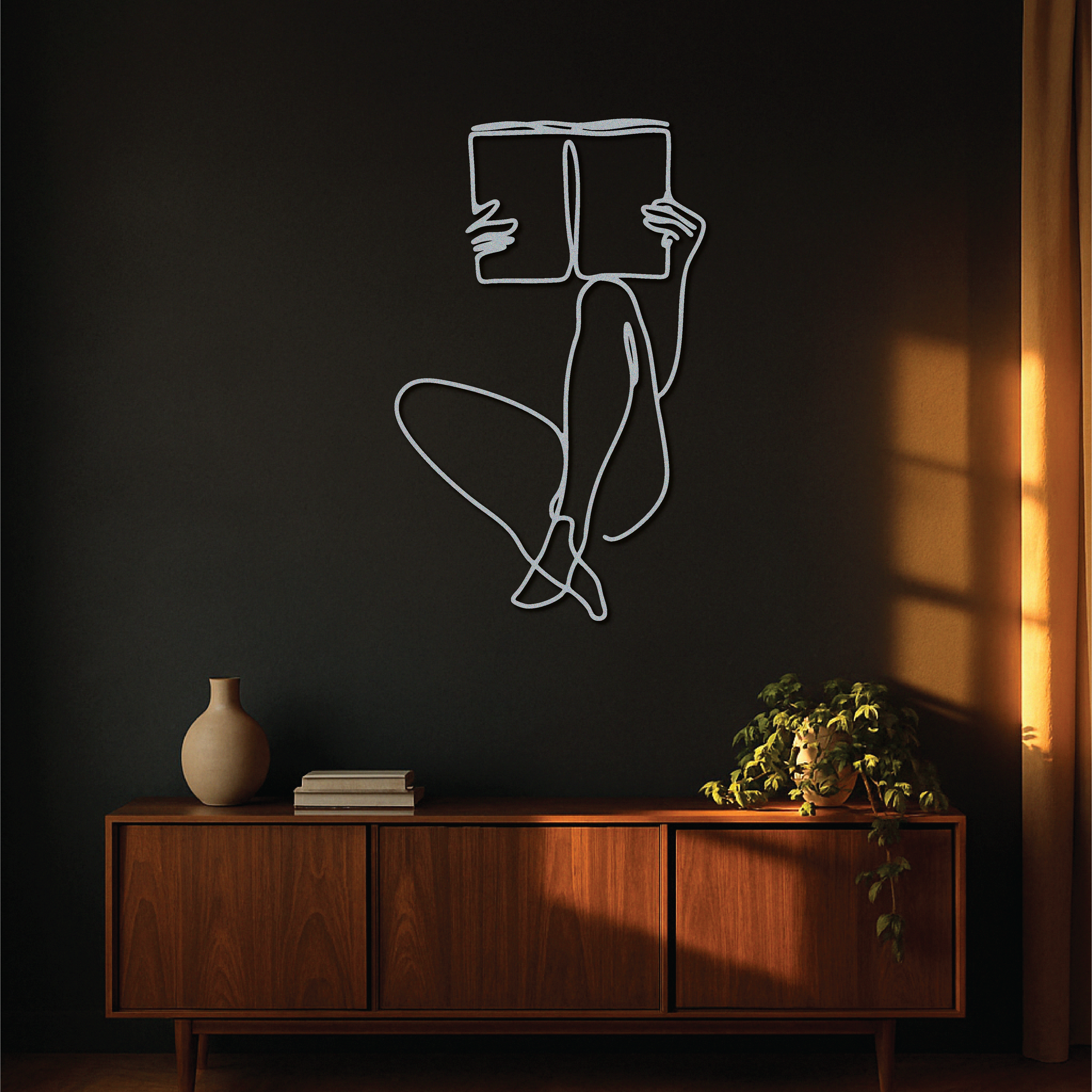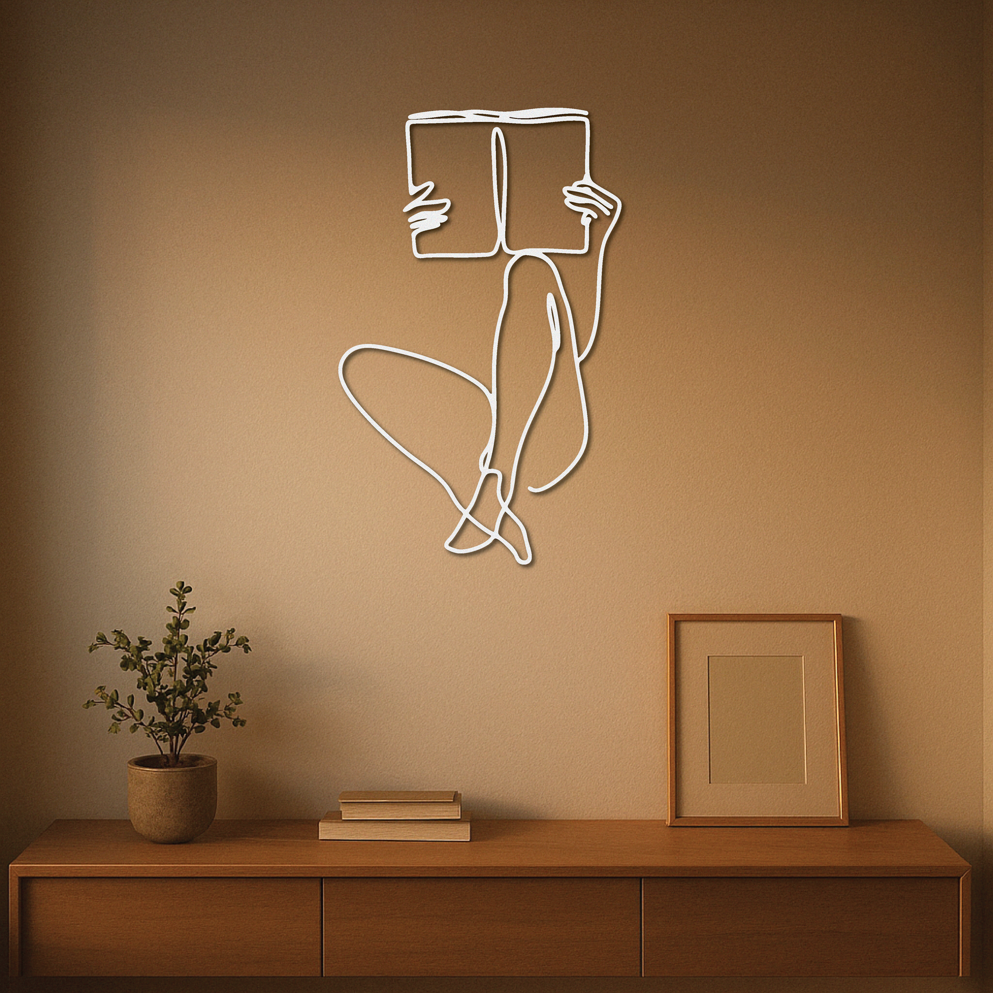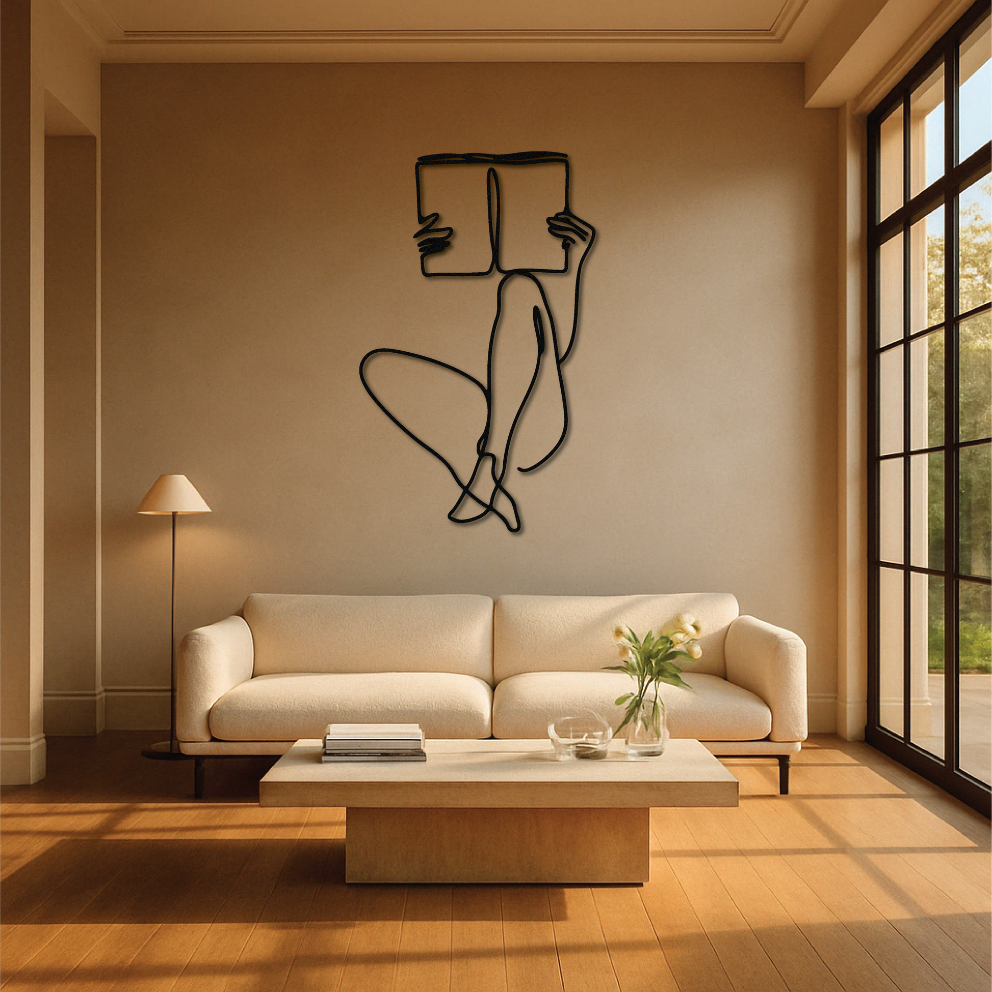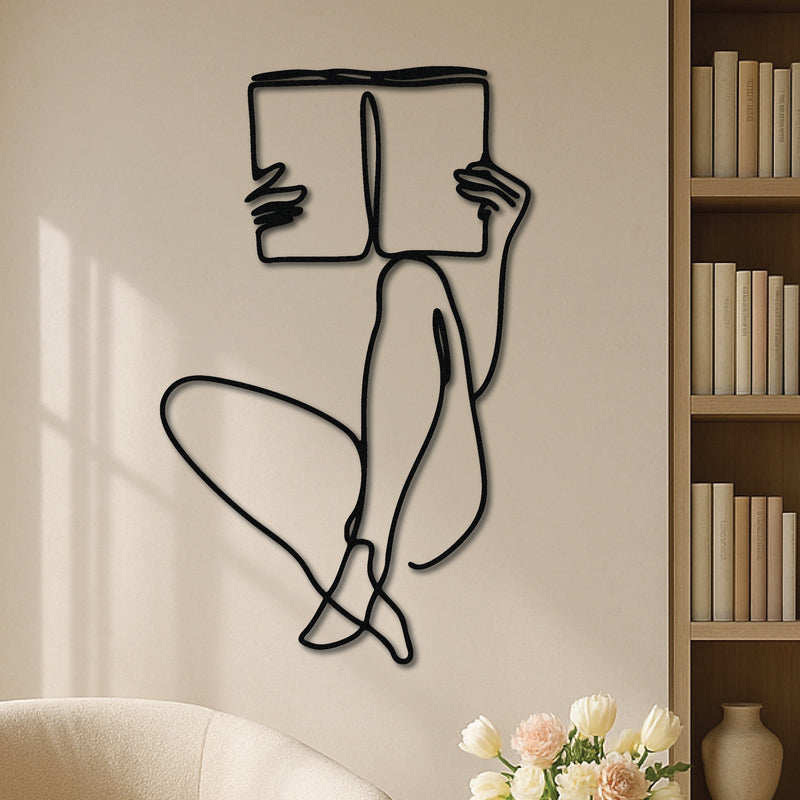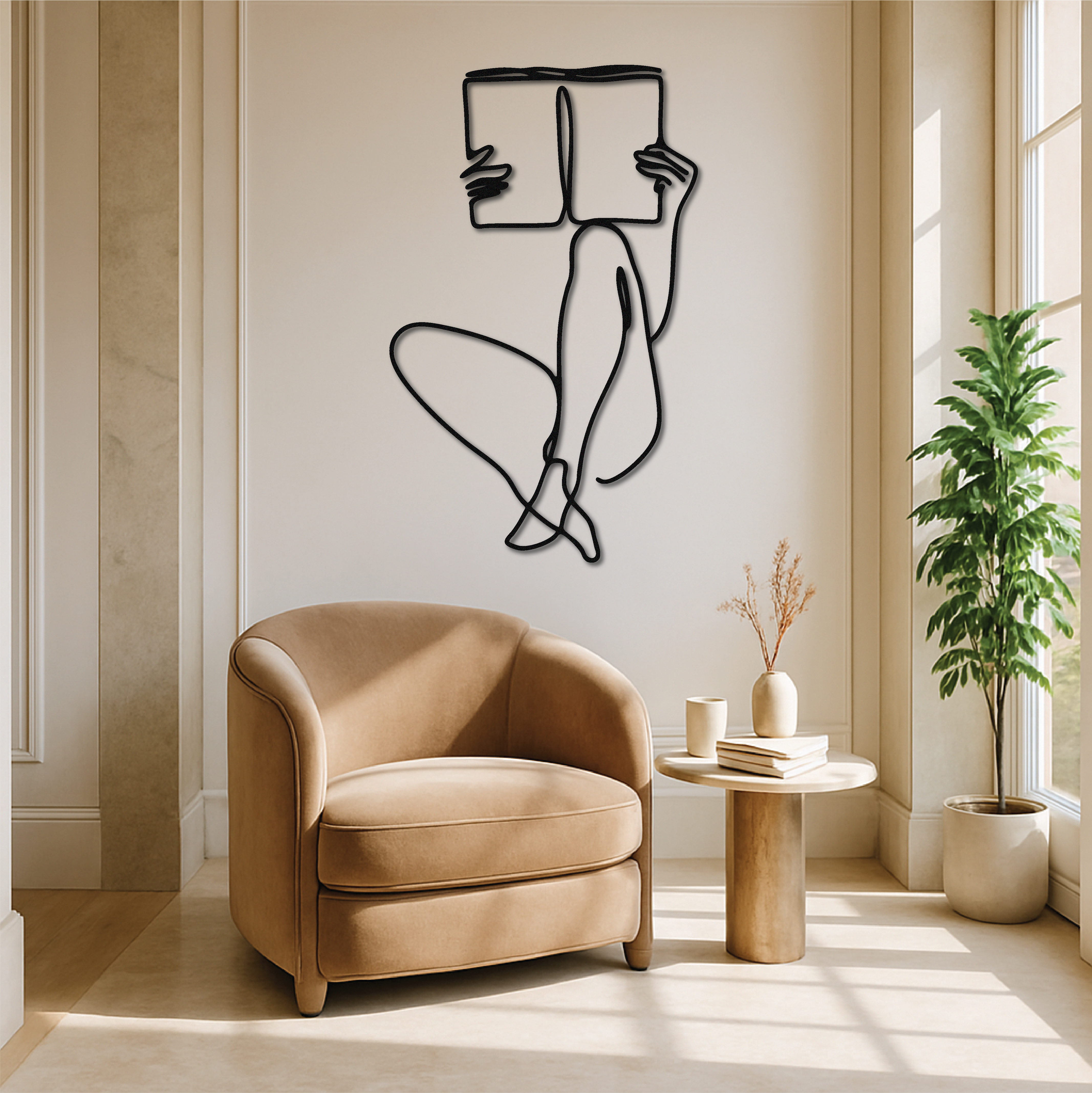 Celebrate calm, curiosity, and creativity with this elegant Reading Woman Metal Wall Art, crafted from solid powder-coated steel in a minimalist one-line silhouette. This unique wall sculpture captures the peaceful moment of a woman immersed in her book — a timeless tribute to quiet moments and personal space.