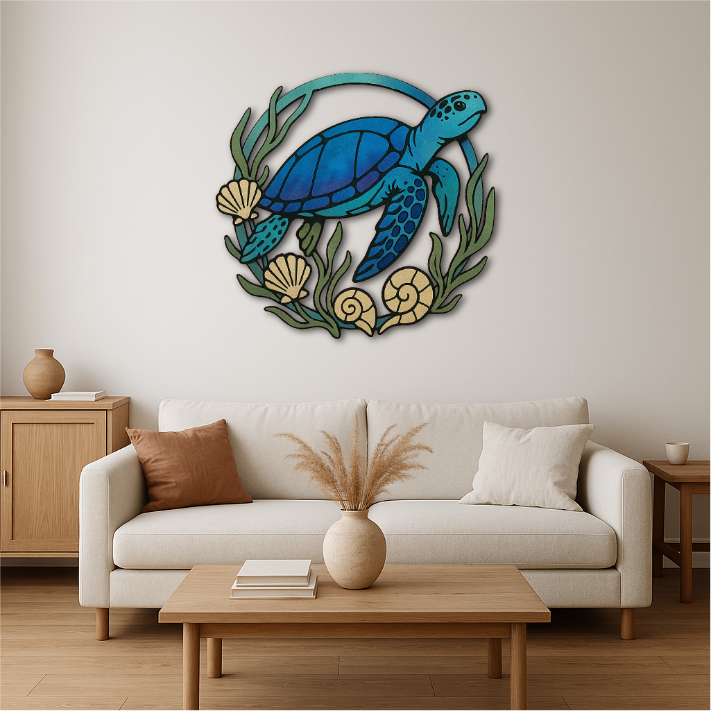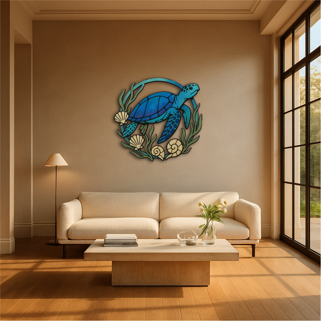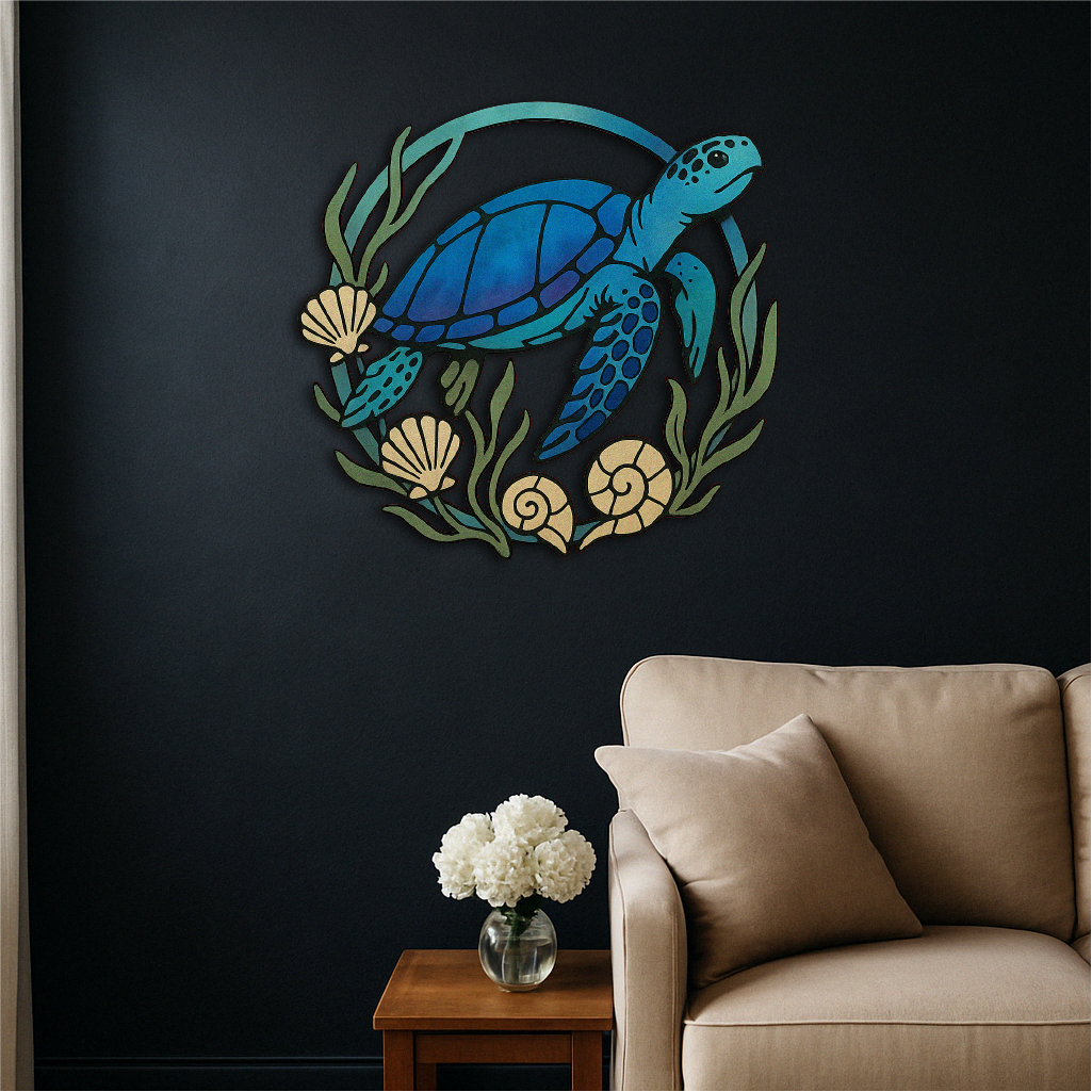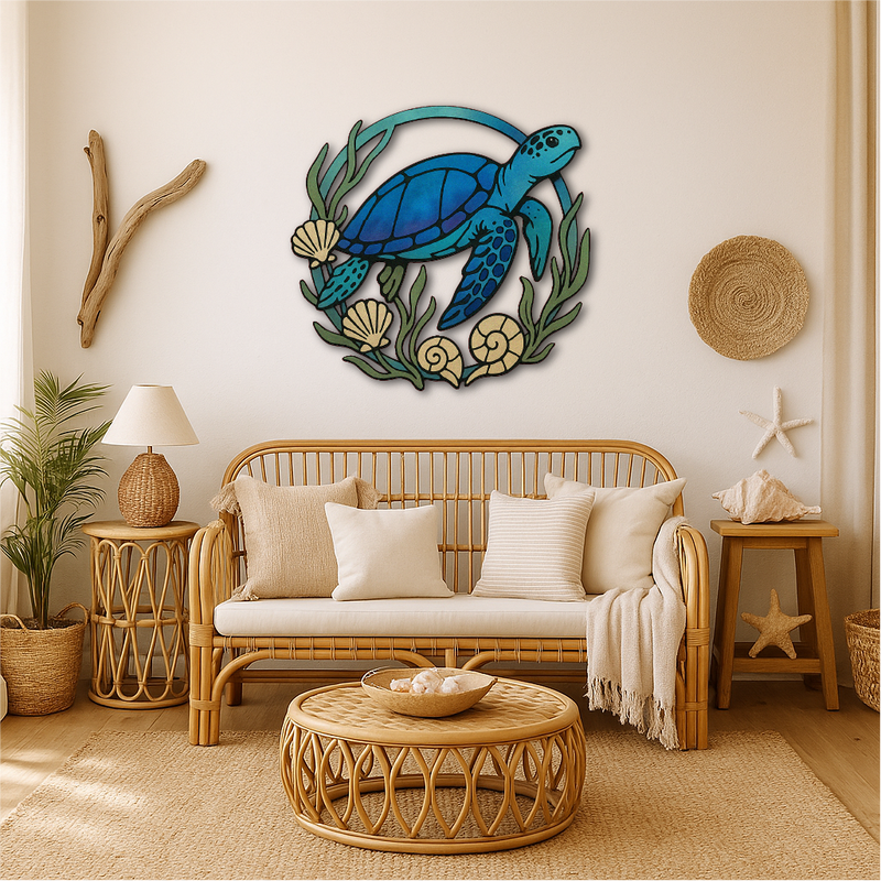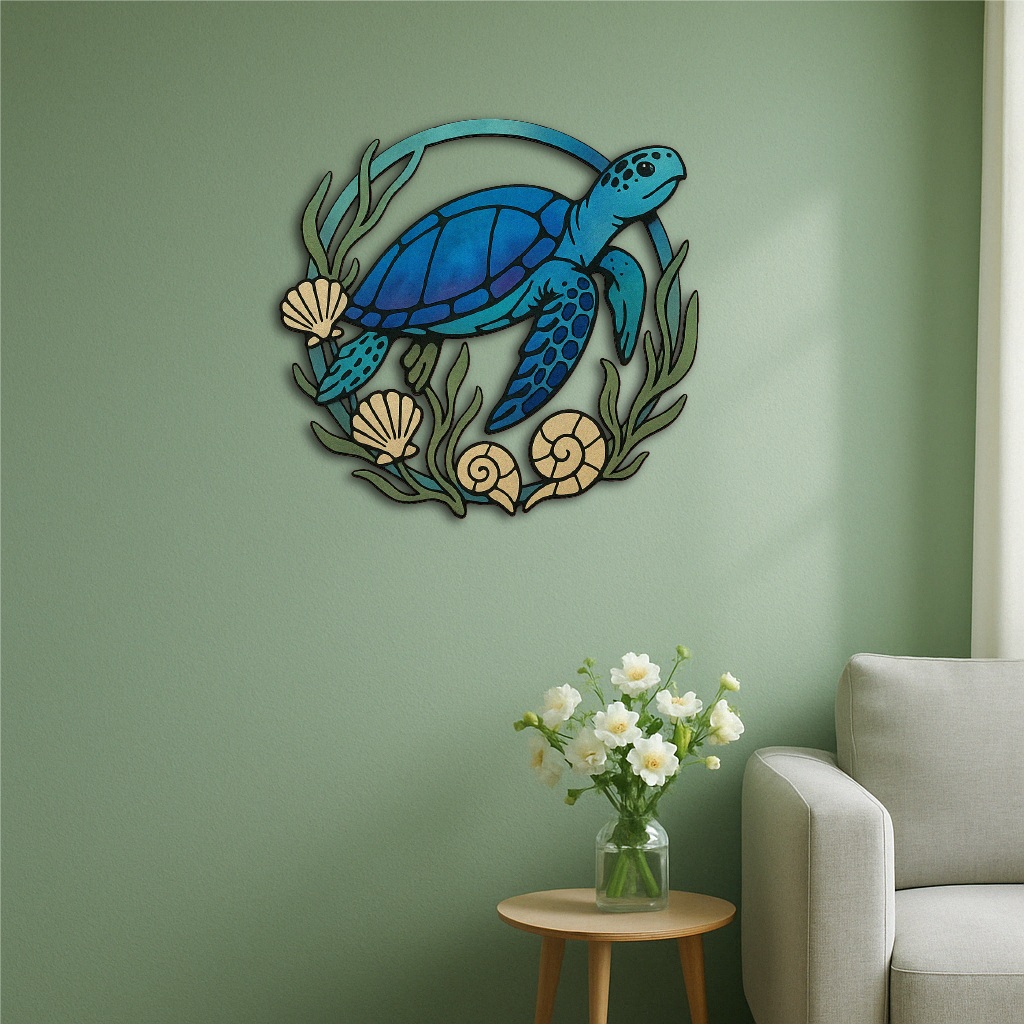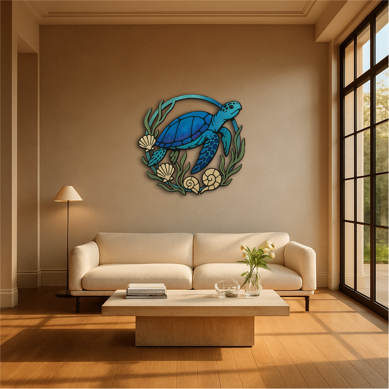 Whether you're creating a beach house atmosphere, decorating a bathroom, or adding charm to a hallway or office, this turtle brings oceanic energy, movement, and life to your space.