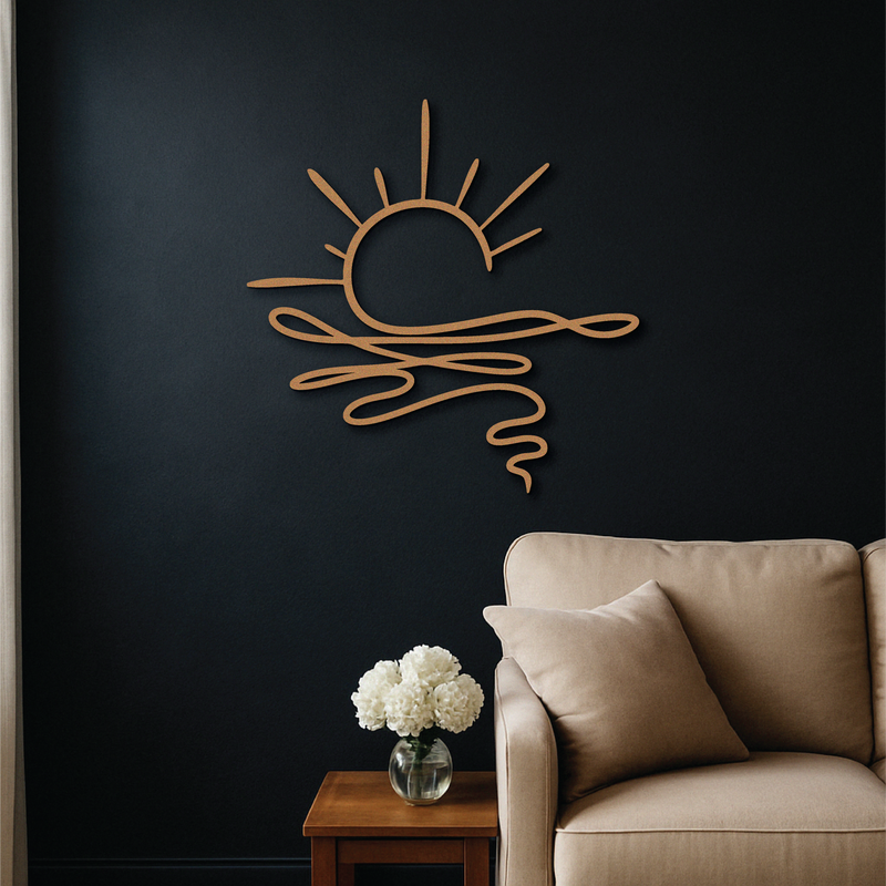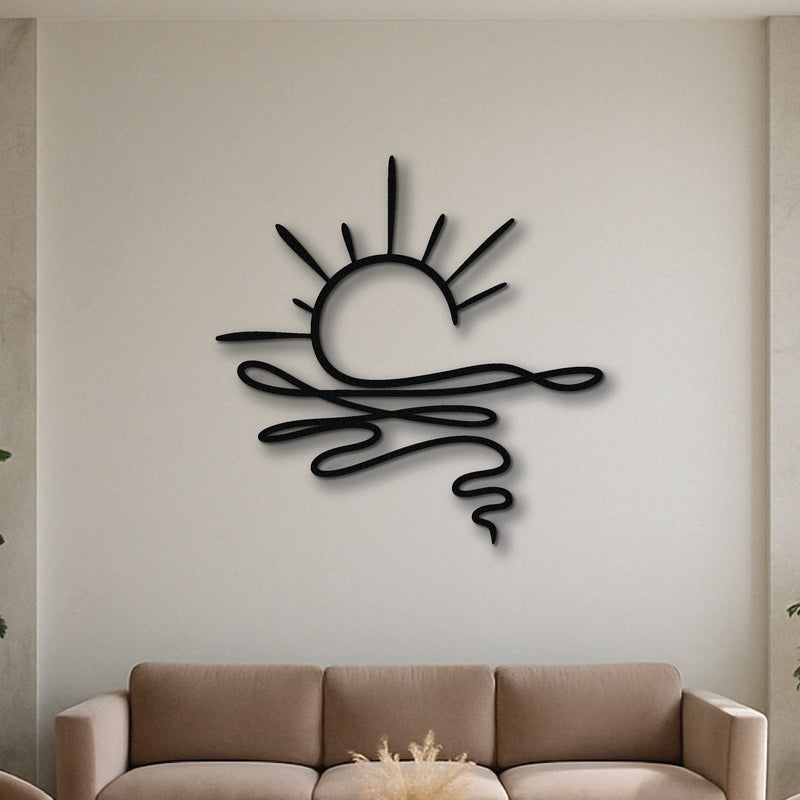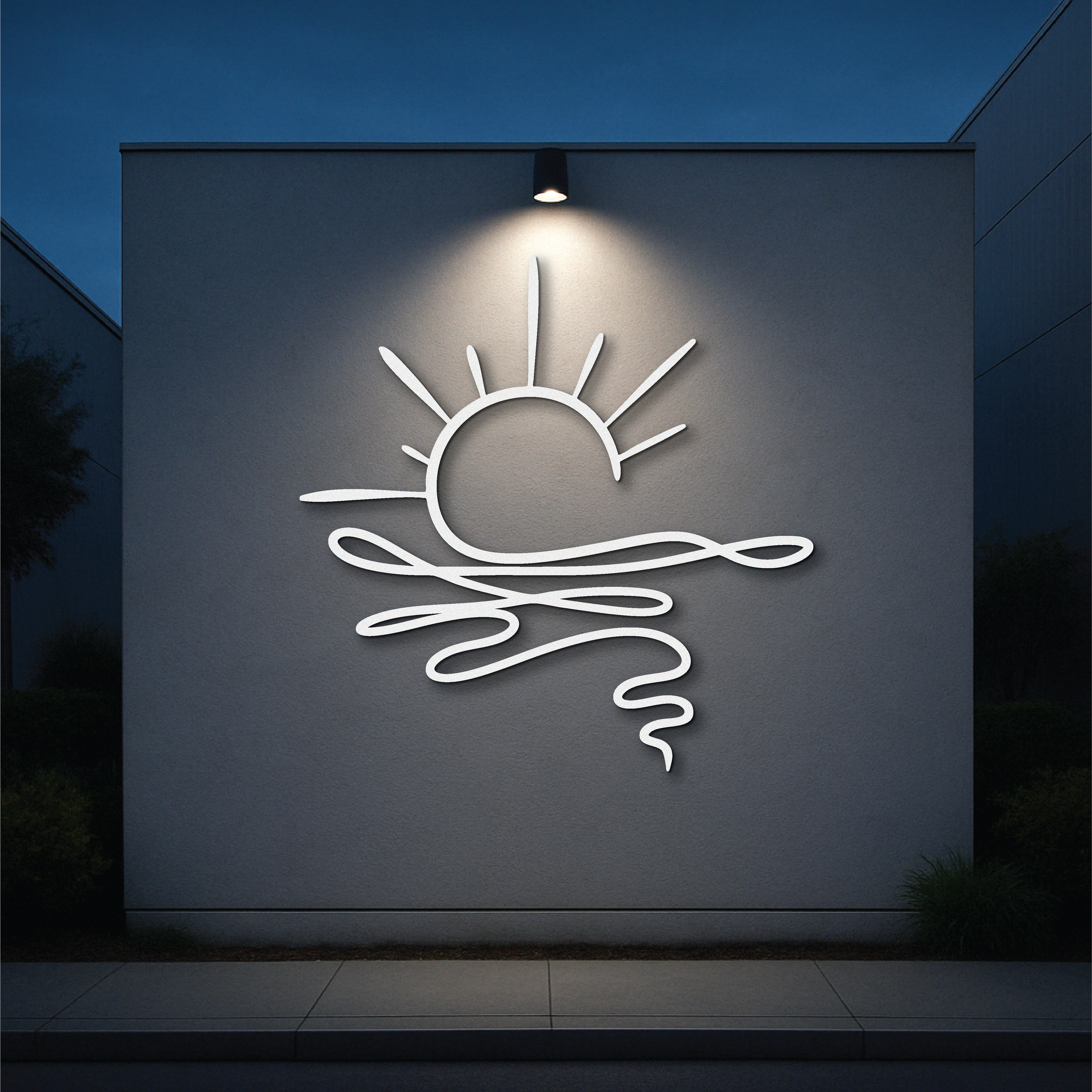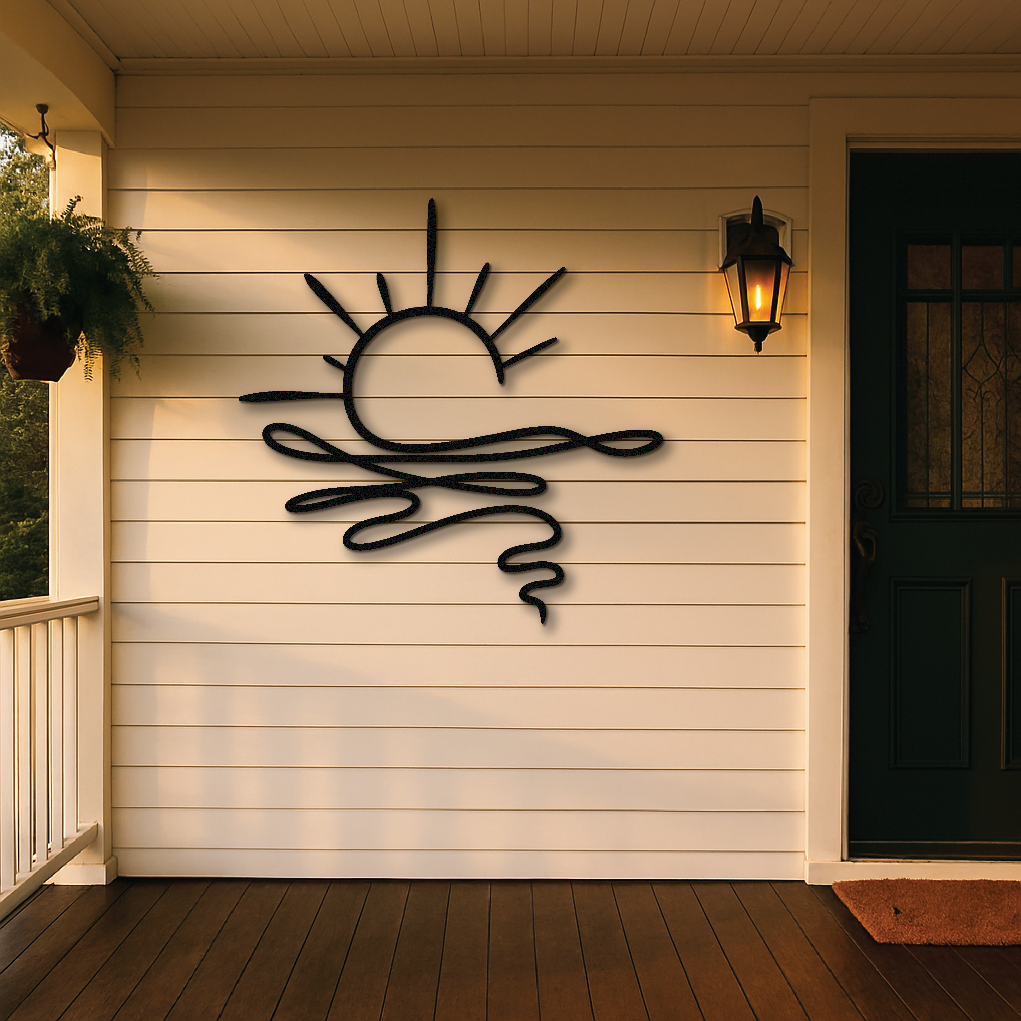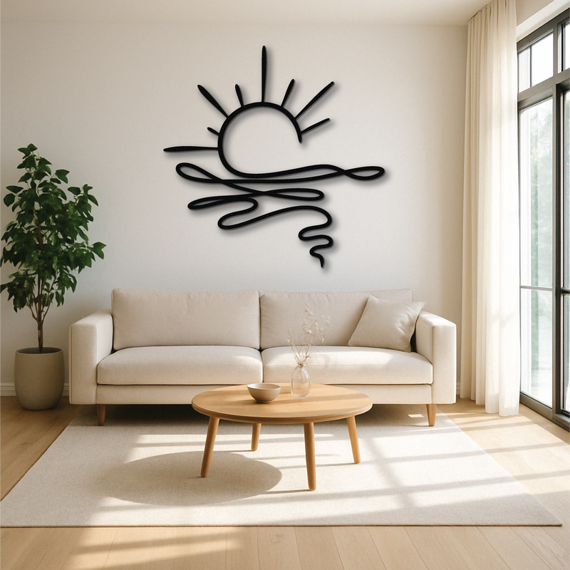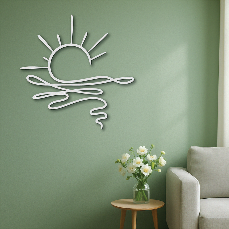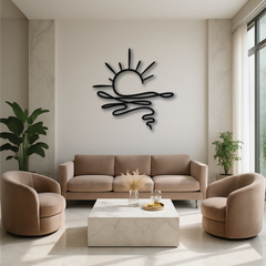 Add a bold and elegant statement to your outdoor space with this Sun and Waves Metal Wall Art, crafted entirely from solid steel and finished in a weather-resistant powder-coated matte white. The continuous line design captures the peaceful motion of waves and the rising sun in a modern, minimalist form — perfect for homes, patios, garden walls, or business exteriors.