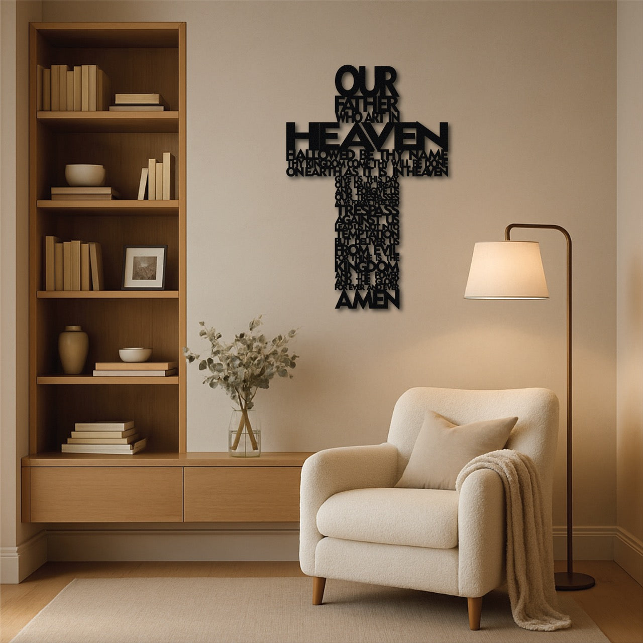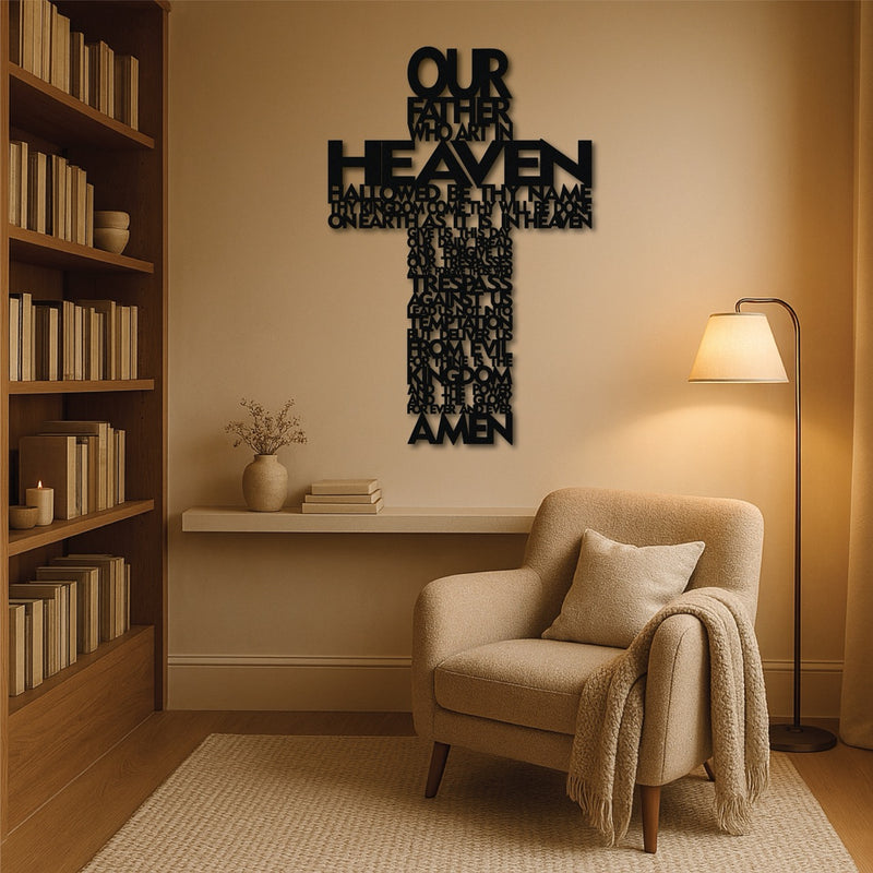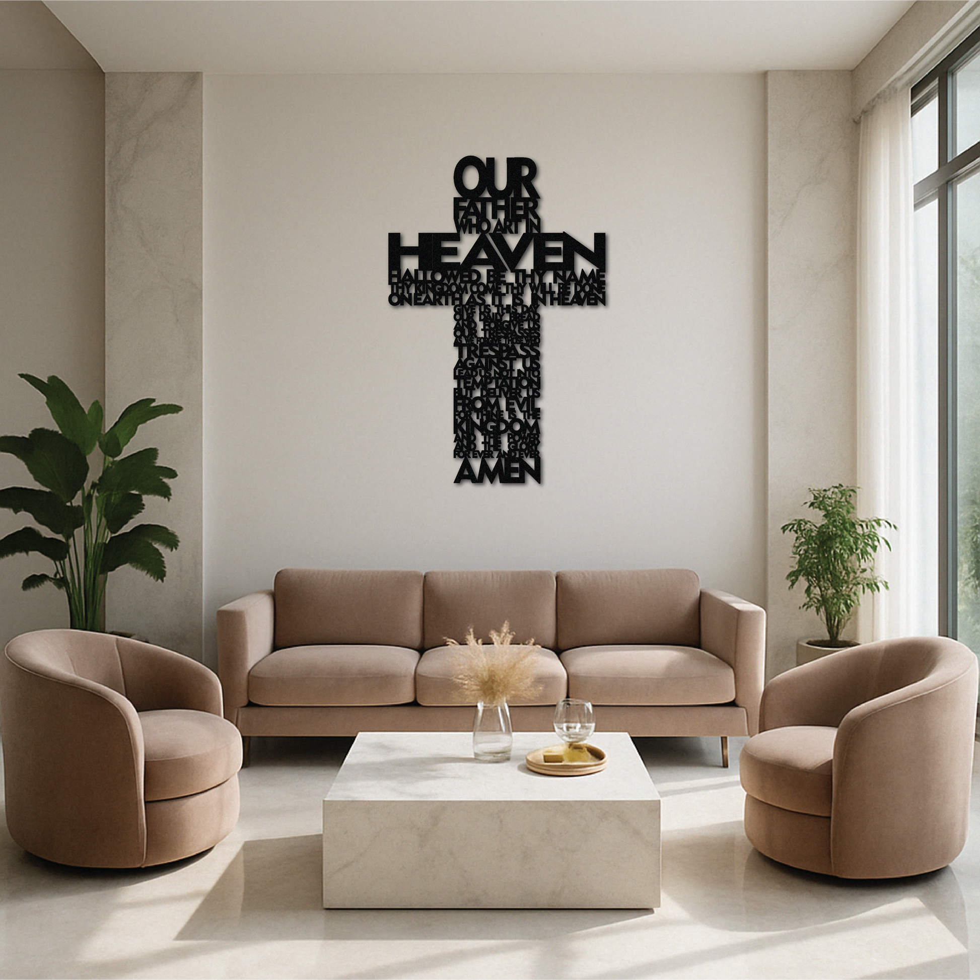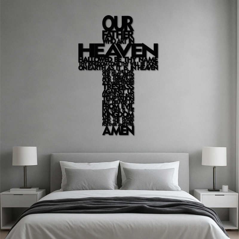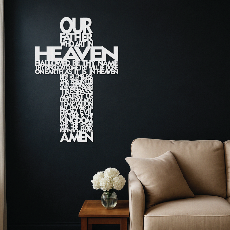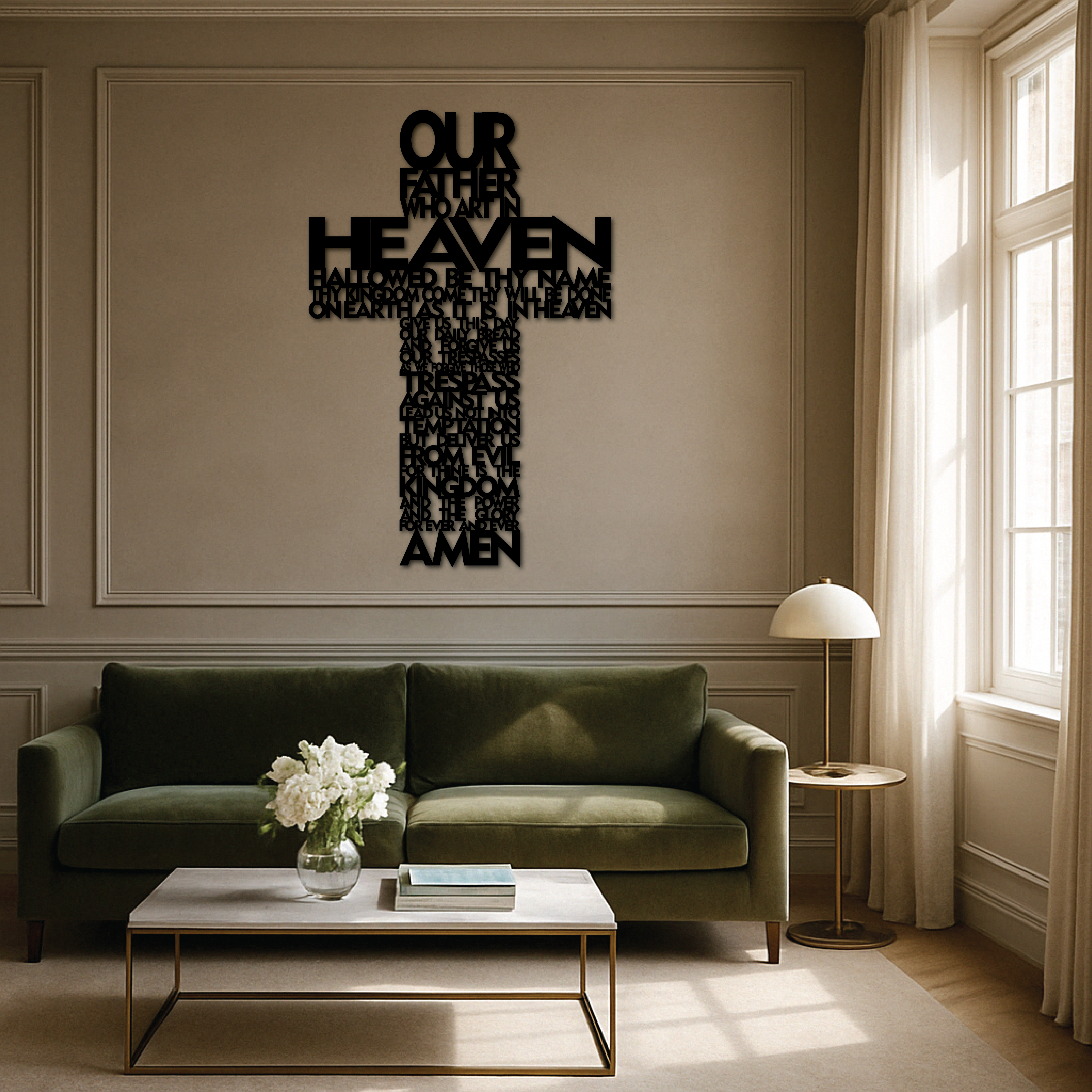 Bring a powerful reminder of faith into your home with this Lord’s Prayer Cross Wall Art — a beautifully designed piece where the entire prayer is formed into the shape of a cross using bold, modern typography. Perfect for any room where you seek reflection, peace, or inspiration, this artwork adds both spiritual depth and visual impact.